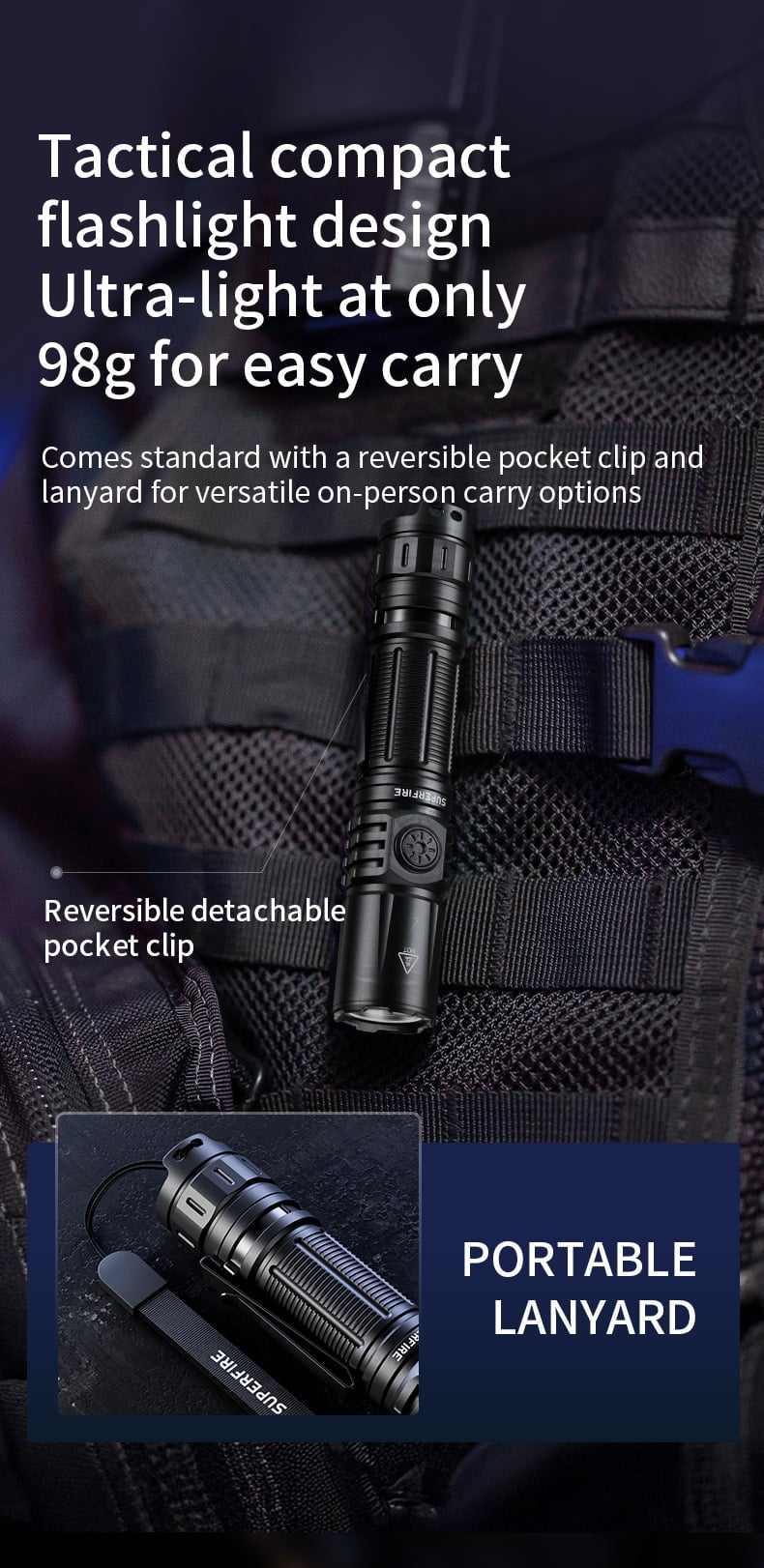 Equipped with a two-way pocket clip and lanyard, allowing clipping or hanging for more convenient carrying options.