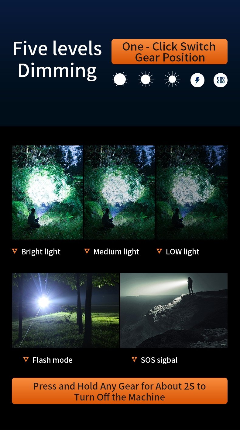 Modes 5modes (High>Med>Low>Strobe>SOS)