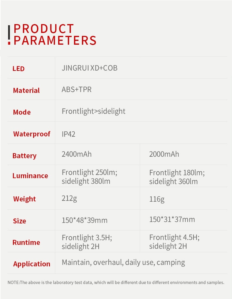 CREE XPE LED (front light) + COB (side light)