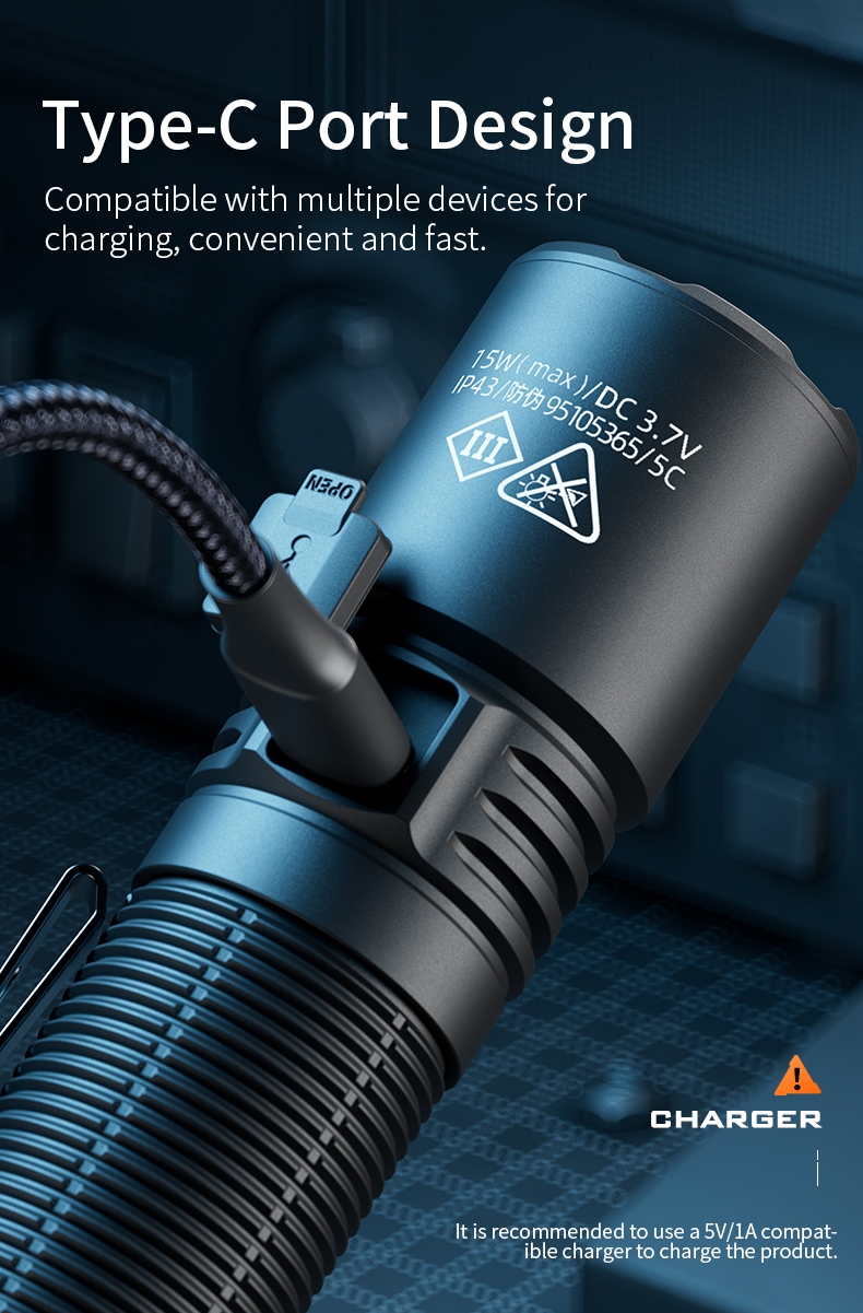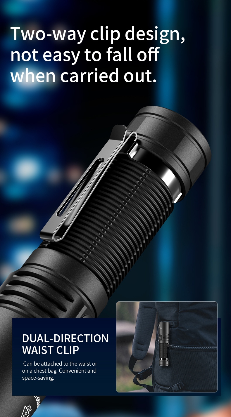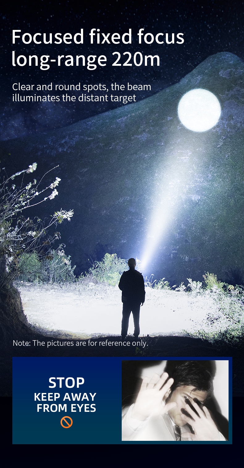 Exquisite design, stylish and compact. Fixed-focus flashlight.