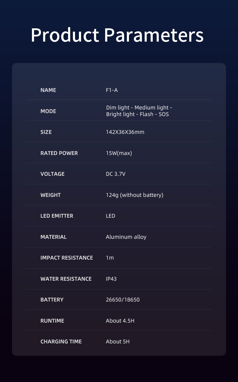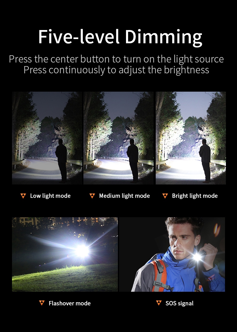 Modes:Low-Medium-Strong-Strobe-SOS-Off