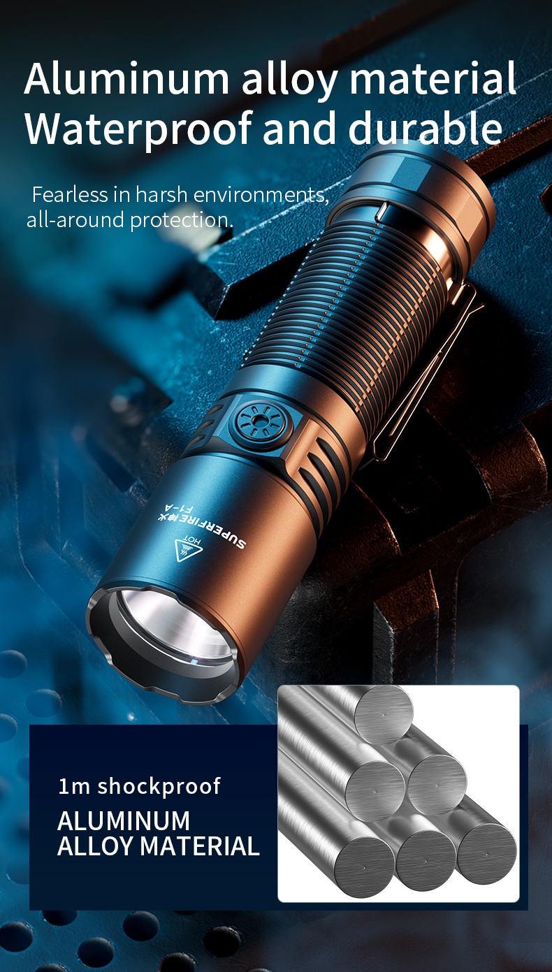 Aluminum alloy body for waterproof and drop-resistant performance.