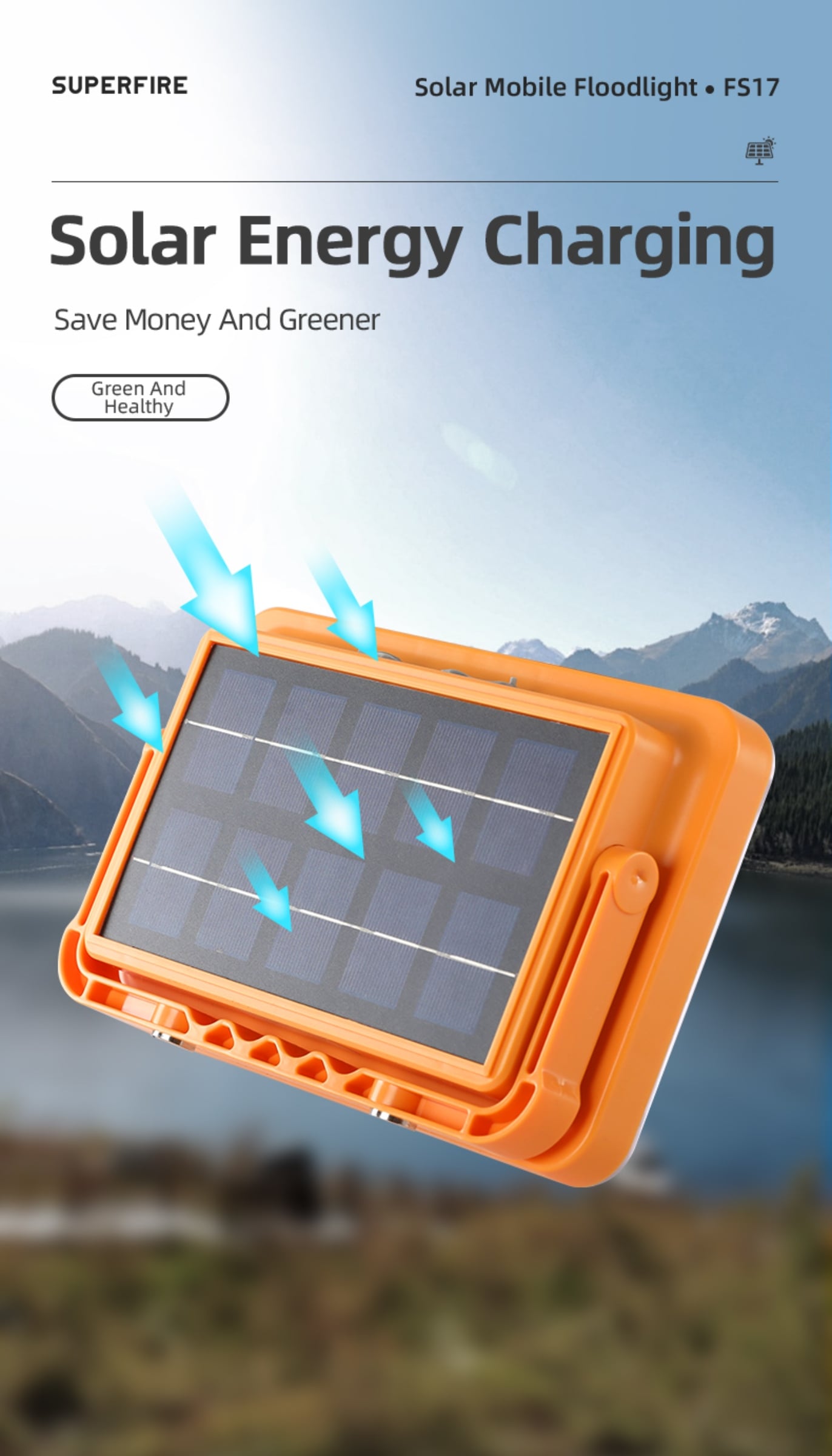 Solar-powered charging, eco-friendly and energy-saving.