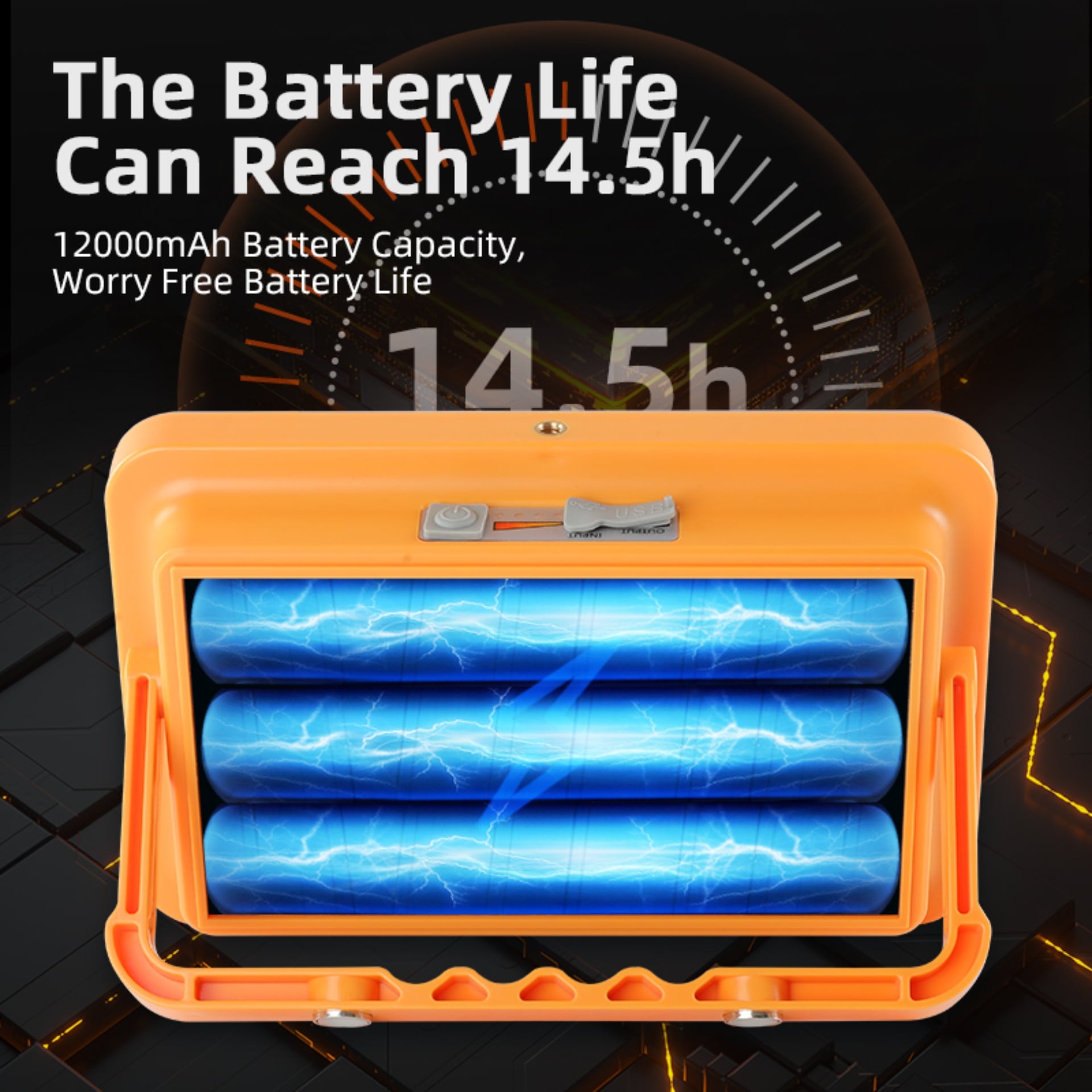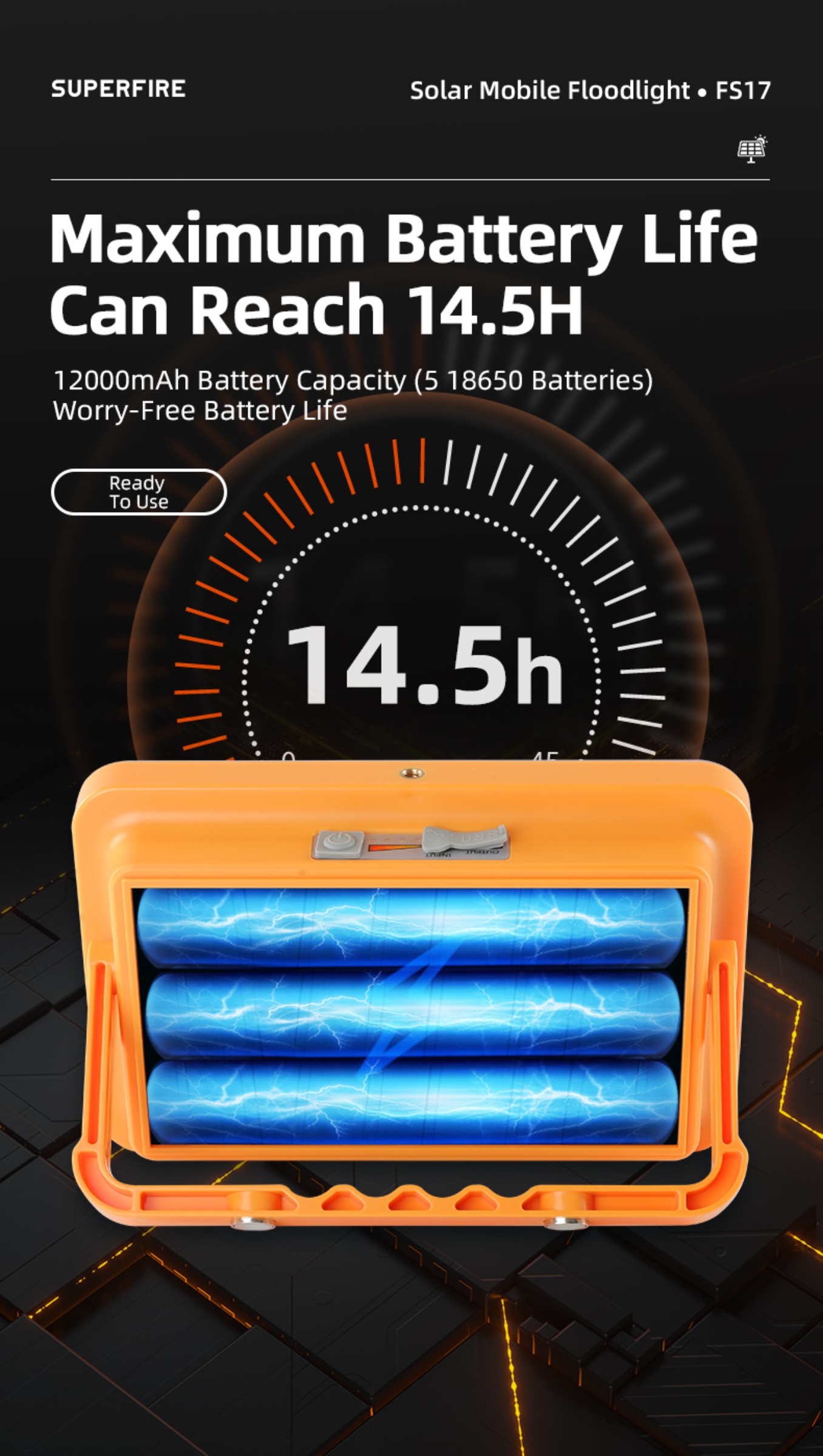Battery:12000mAh (5 pcs 18650 Lithium-ion Battery)