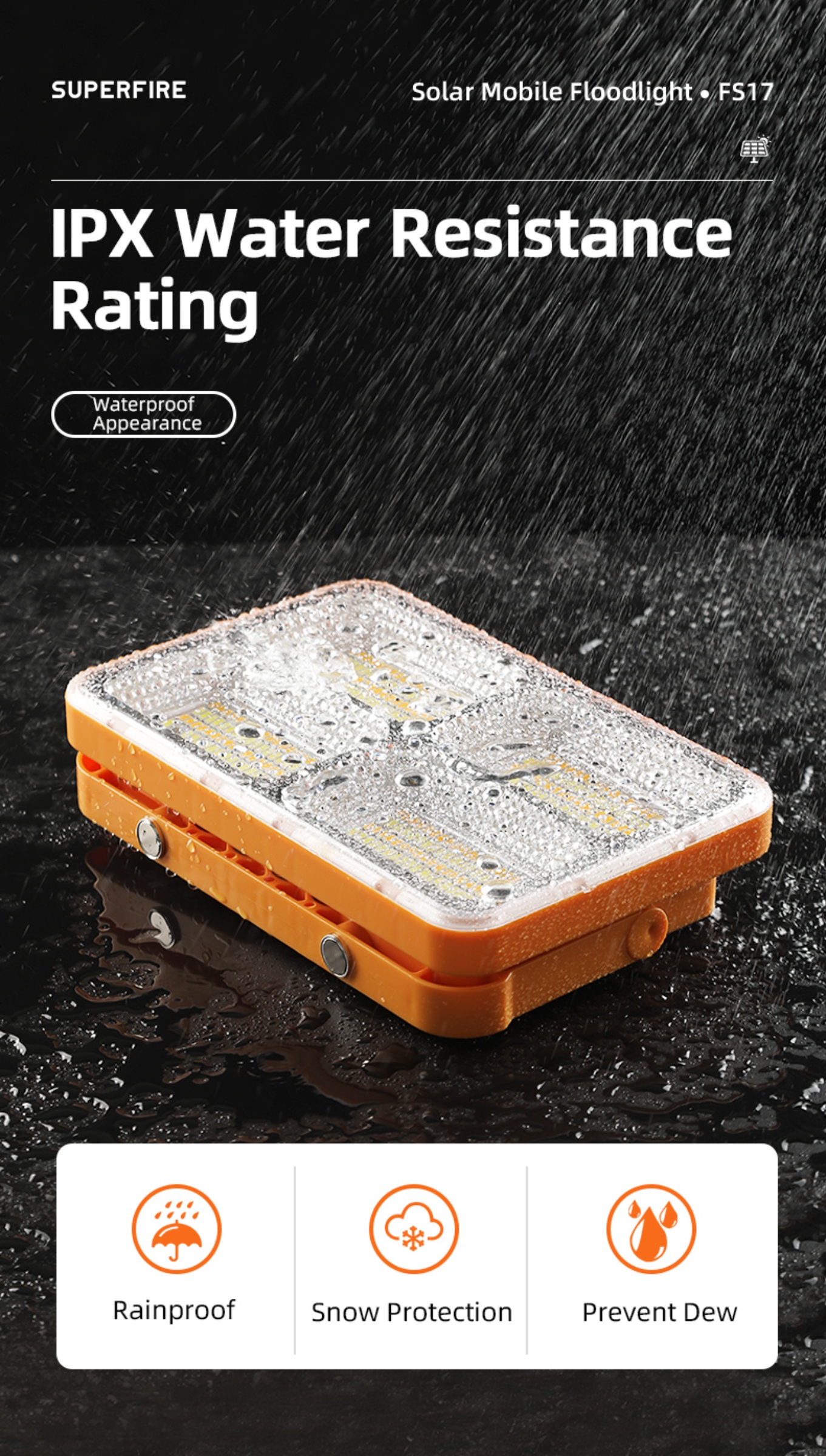 IP54 waterproof rating, ensuring reliable illumination even in rainy conditions.