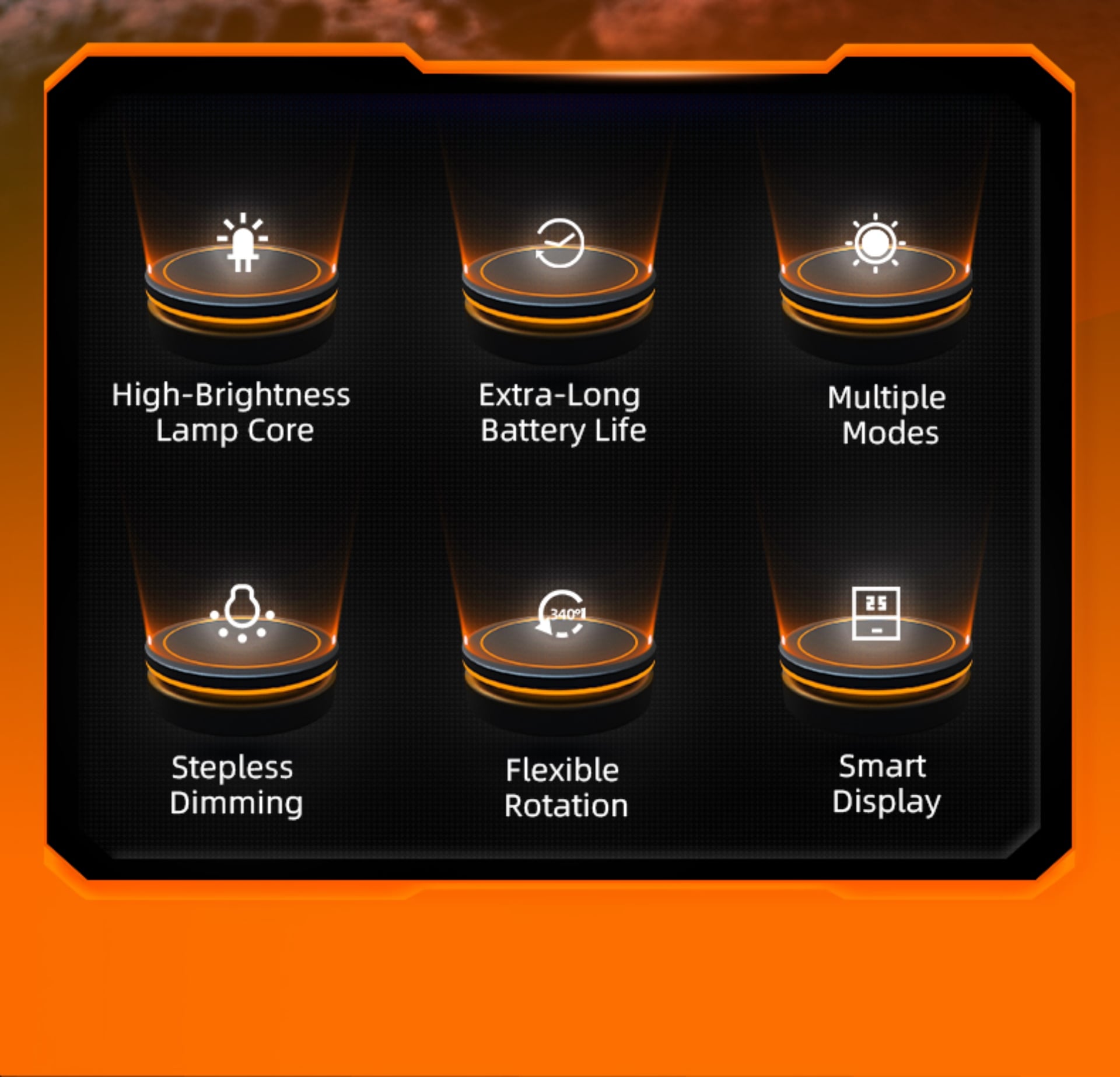 During use, you can select spotlight or floodlight mode via the control panel. Use the up and down buttons to achieve stepless dimming, allowing brightness adjustment for different environments. The display shows the remaining runtime of the light.