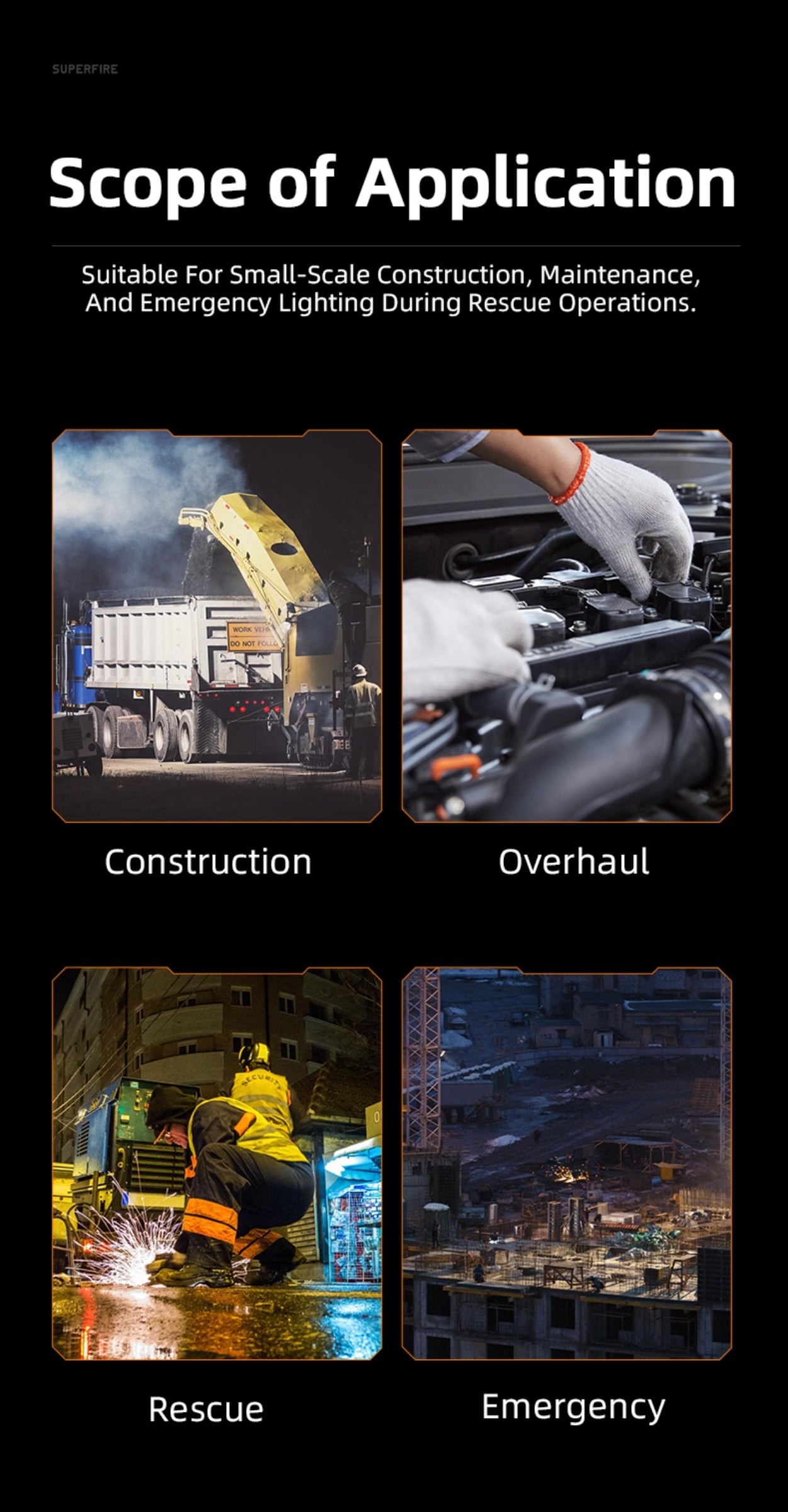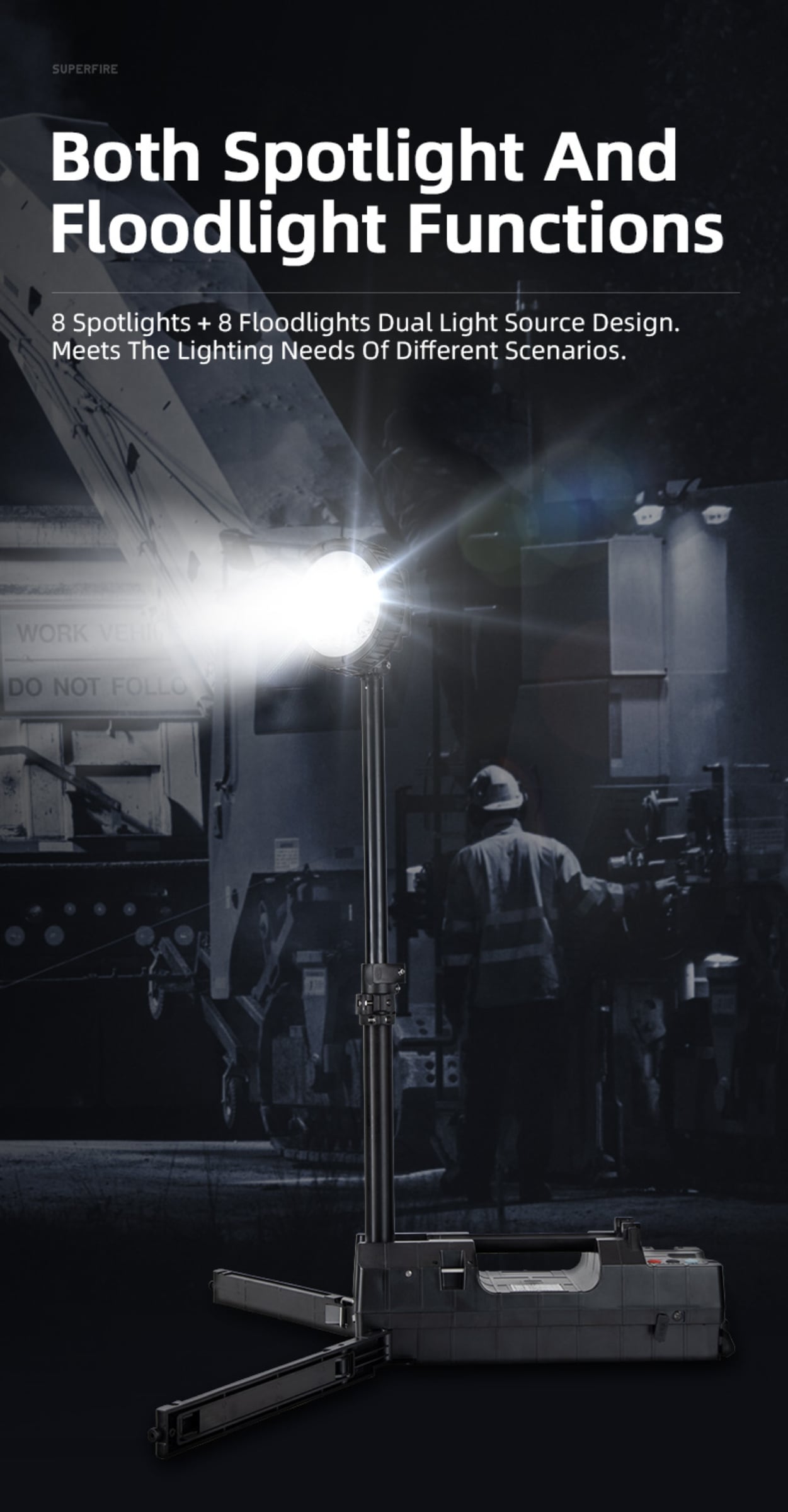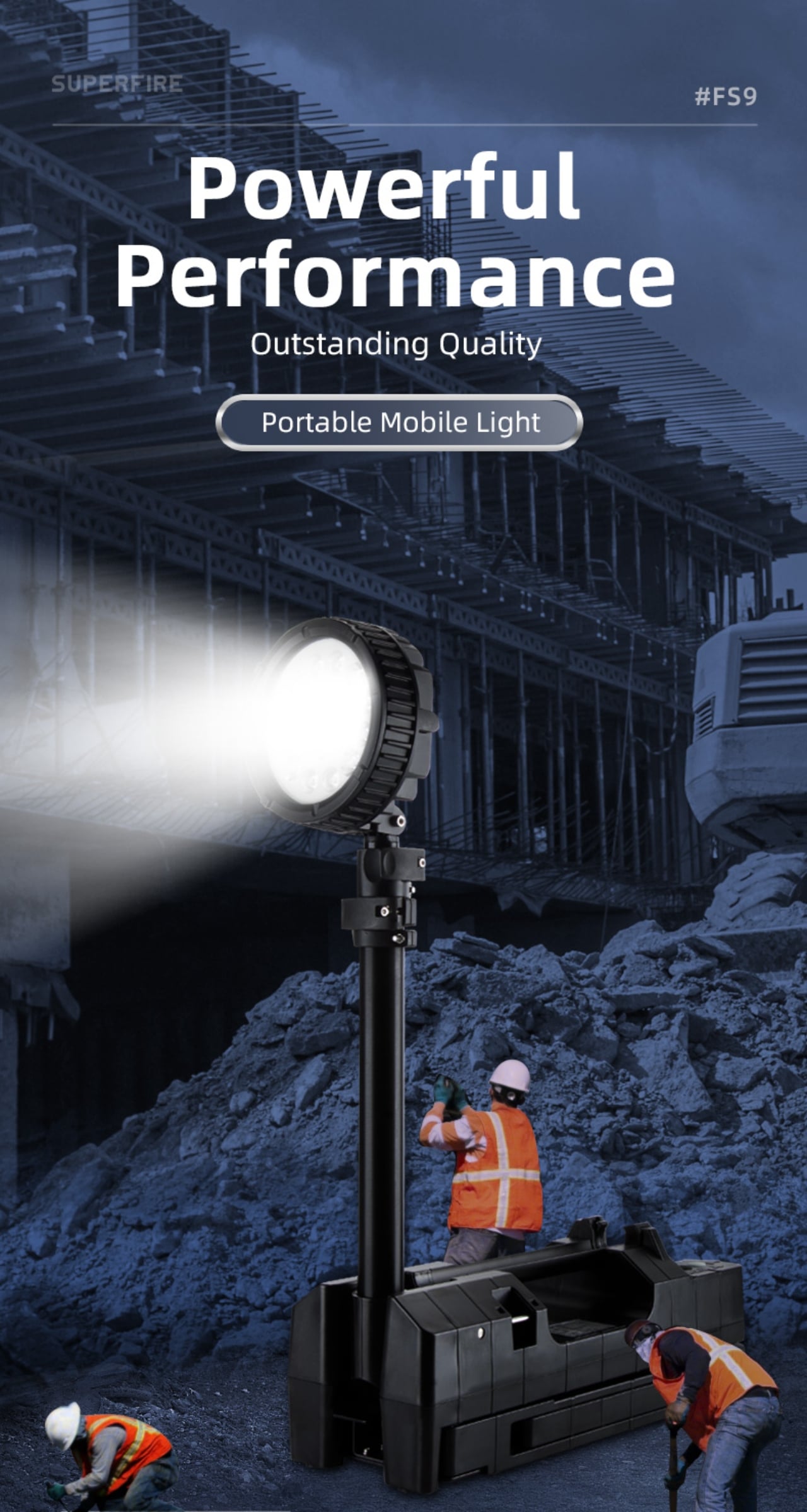 It is suitable for small-scale construction, equipment maintenance, emergency rescue and other scenarios that require mobile lighting.