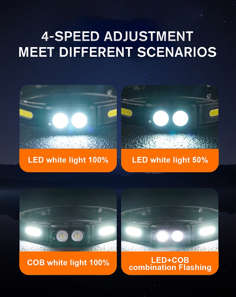 Light Modes: Main light strong light - Main light weak light - COB strong light - Off / Main light + COB combination