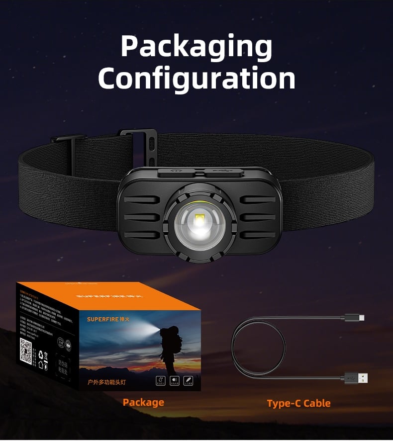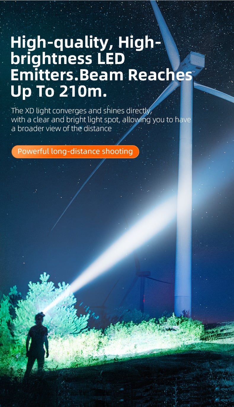 Powerful Illumination Performance: Adopts XTS40 LED bulb with 633K color temperature, providing 130 lumens clear light and 210 meters long射程. The adjustable focus function allows you to switch between long-range spotlight and wide-angle floodlight, easily adapting to different scenarios such as outdoor exploration and precision work.