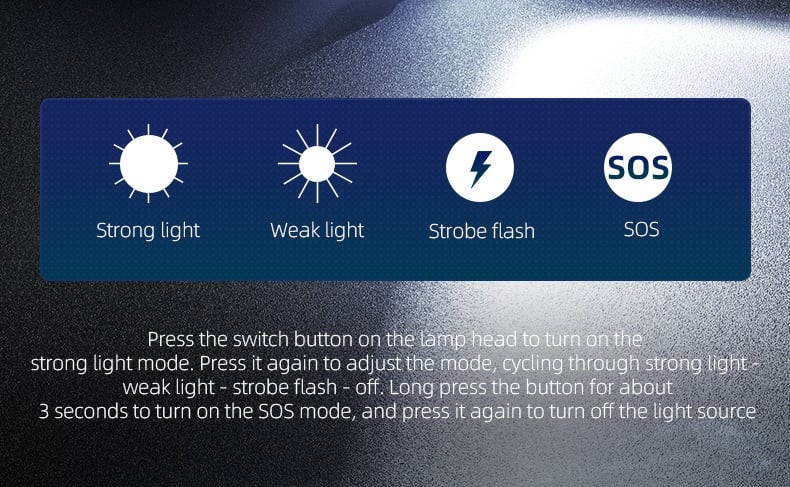 Flexible Operation & Multi-Mode Lighting: Single press the top switch to turn on and cycle through high light, low light, strobe and off modes. Long press for 3 seconds to activate SOS mode for emergency situations, meeting both daily and emergency lighting needs.