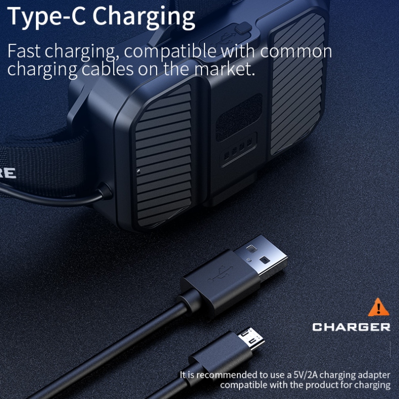 Headlight angle adjustment: Over 90° adjustment for comfortable use in any environment.