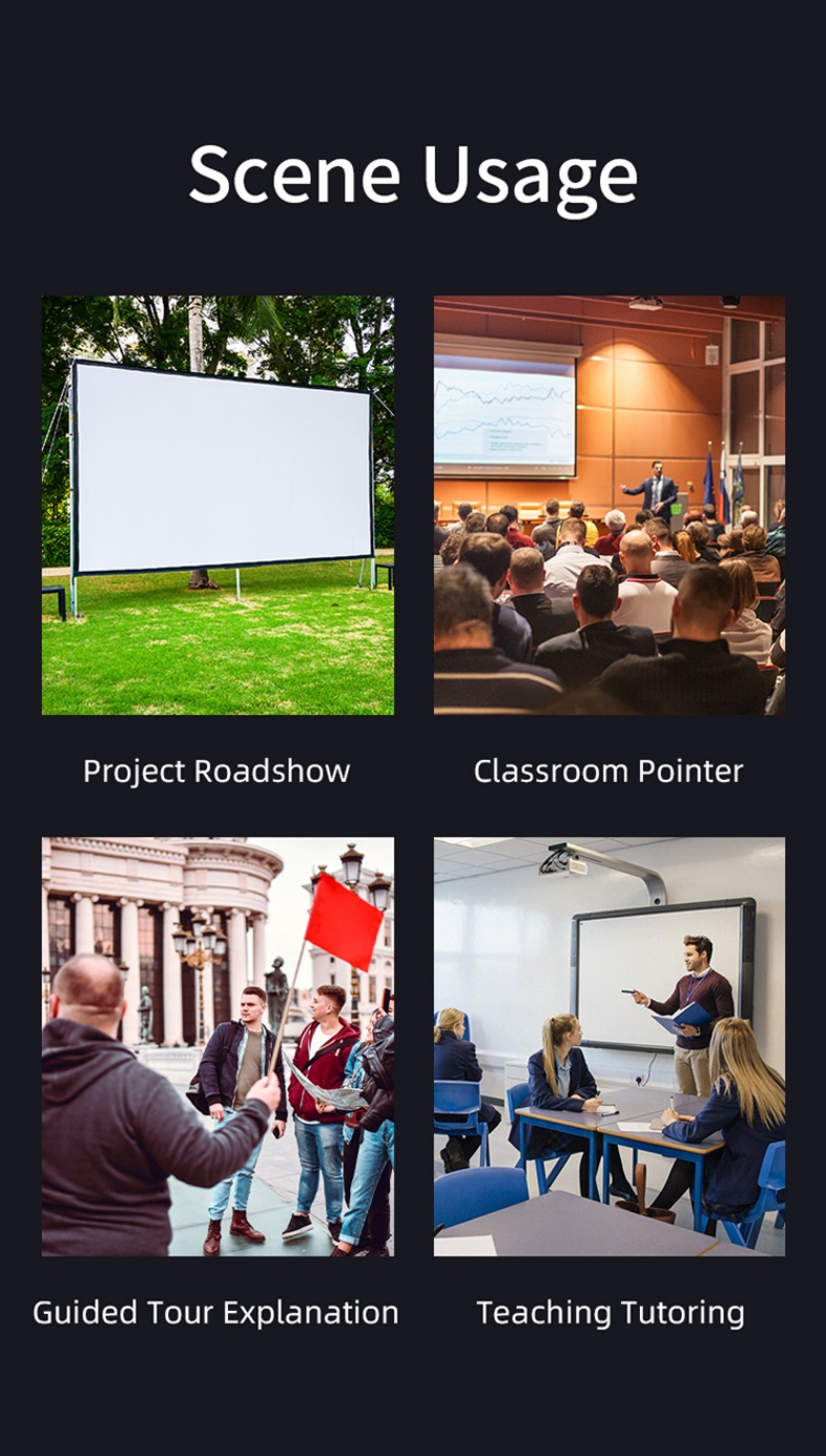 Single Spotlight Mode: The red laser is specially designed for meetings and teaching plan presentations, enabling clear and precise guidance of key information, helping to improve expression efficiency.