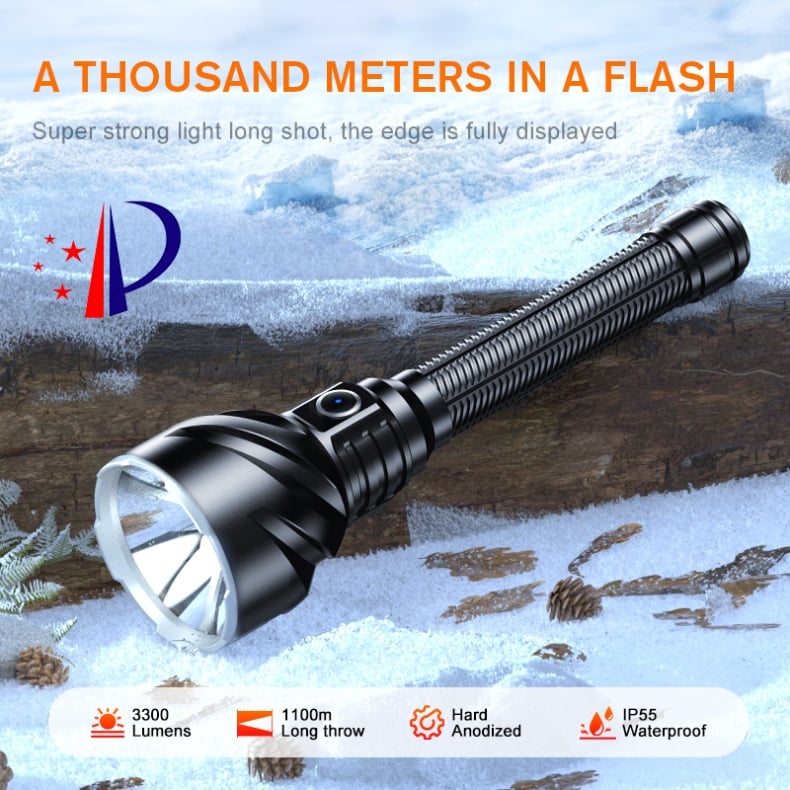 1. 3300 lumens output with a 1100-meter beam (302500 candela) via a large metal reflector.
