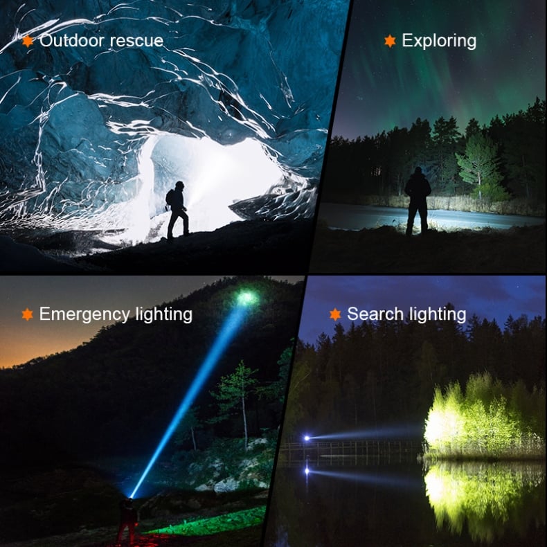 1. 5 lighting modes (Low/Medium/High/Strobe/SOS) for all scenarios; long-press (3s) to turn off in any mode.