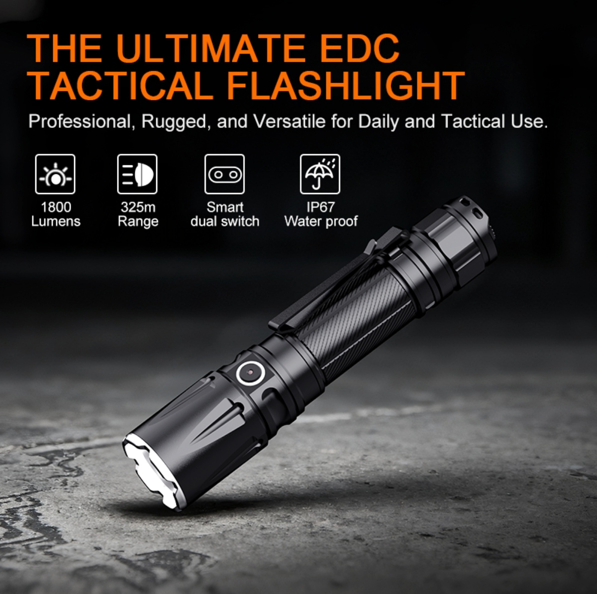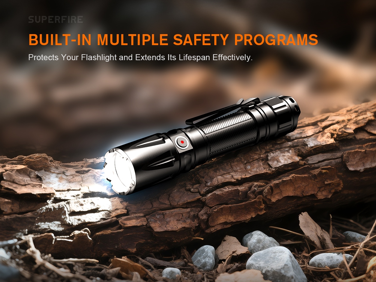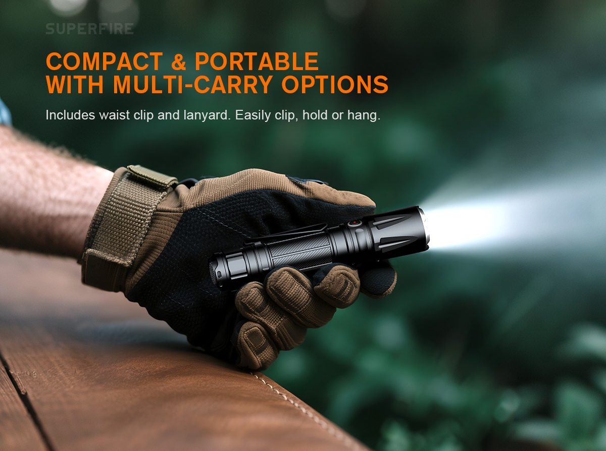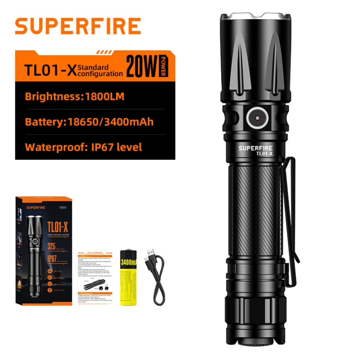 Upgrade to tactical performance with the SUPERFIRE TL01-X. Featuring a tactical tail switch, IP67 waterproofing, 1863 lumens output, and six lighting modes, this is your go-to for professional, outdoor, and emergency missions.