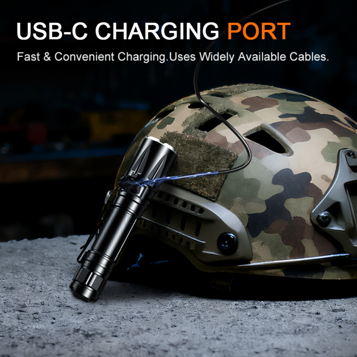 IP67 Waterproof Protection: Upgraded from TN02’s IP44, this flashlight can withstand immersion to 1m depth, fully capable in heavy rain, splashing, or challenging environments.