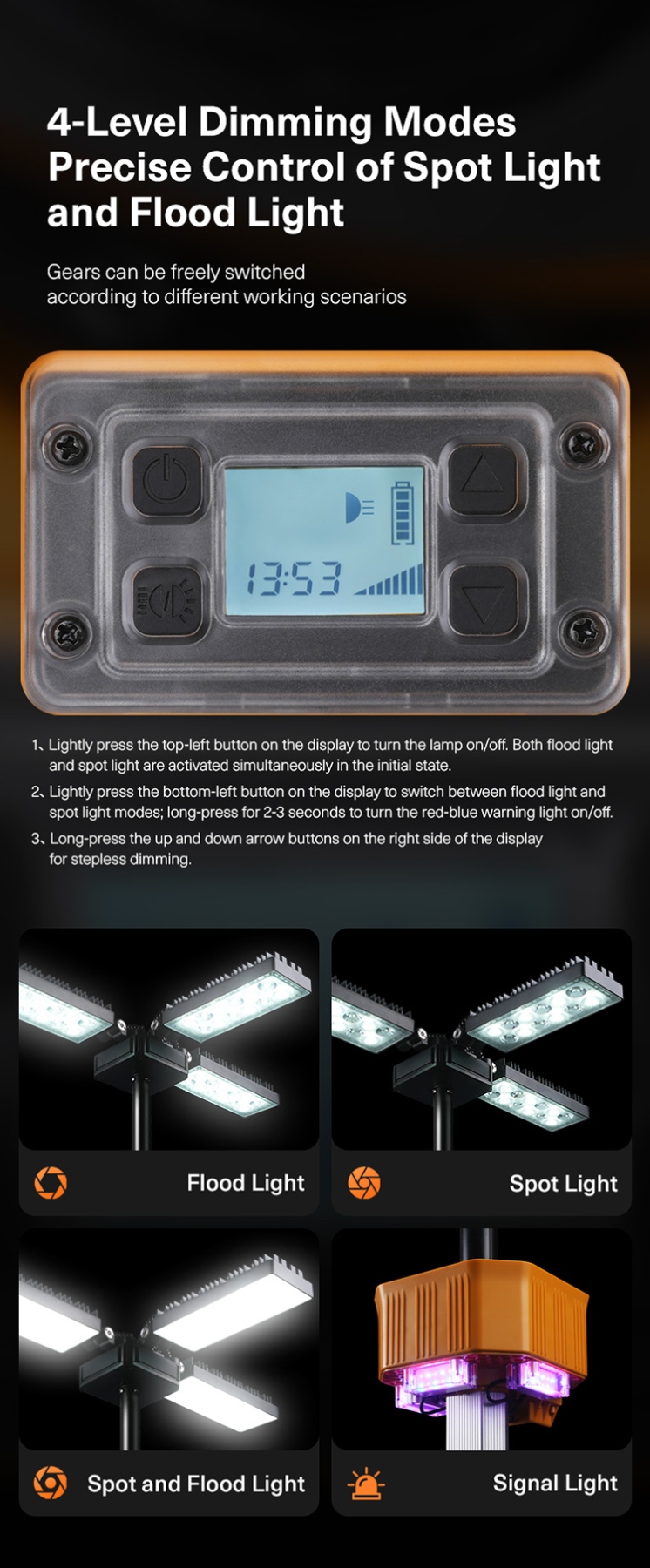 360° All-Around Lighting: The light offers full 360-degree illumination, ensuring comprehensive coverage in all directions.