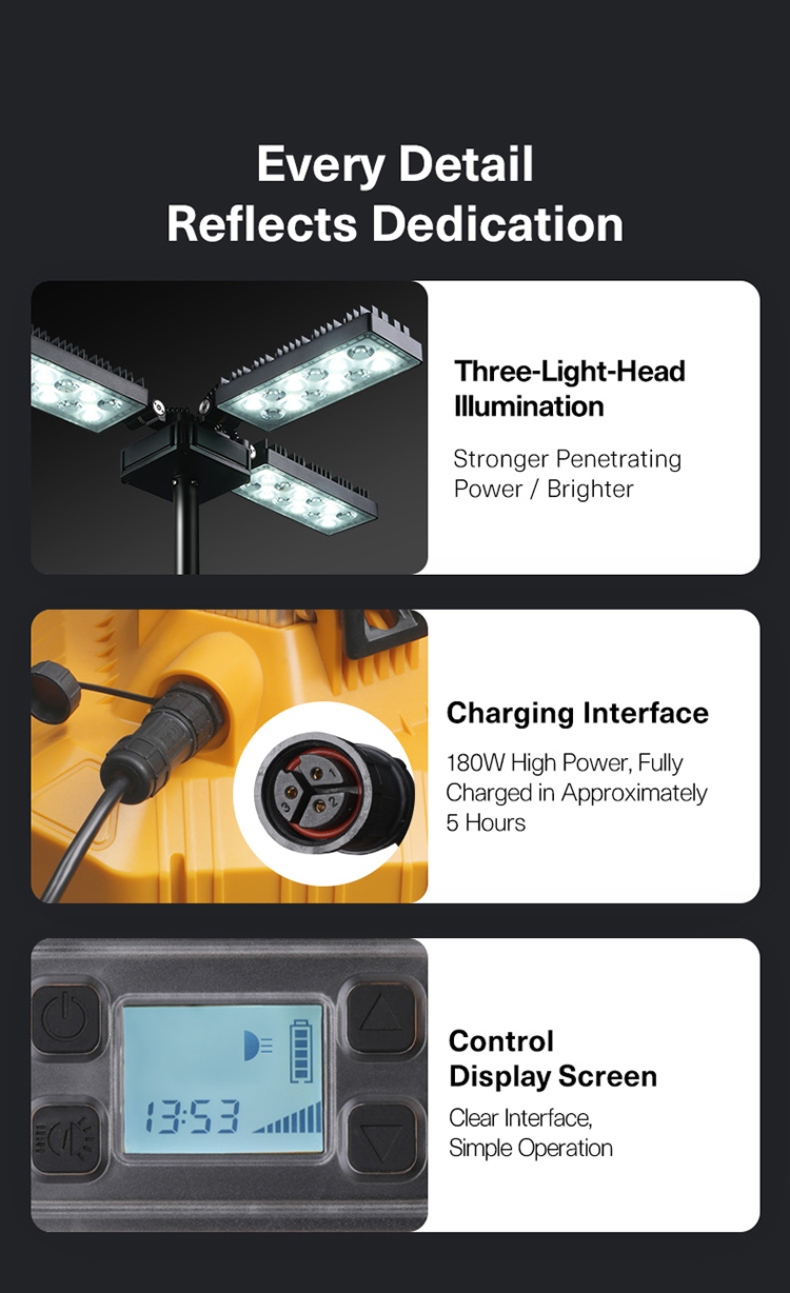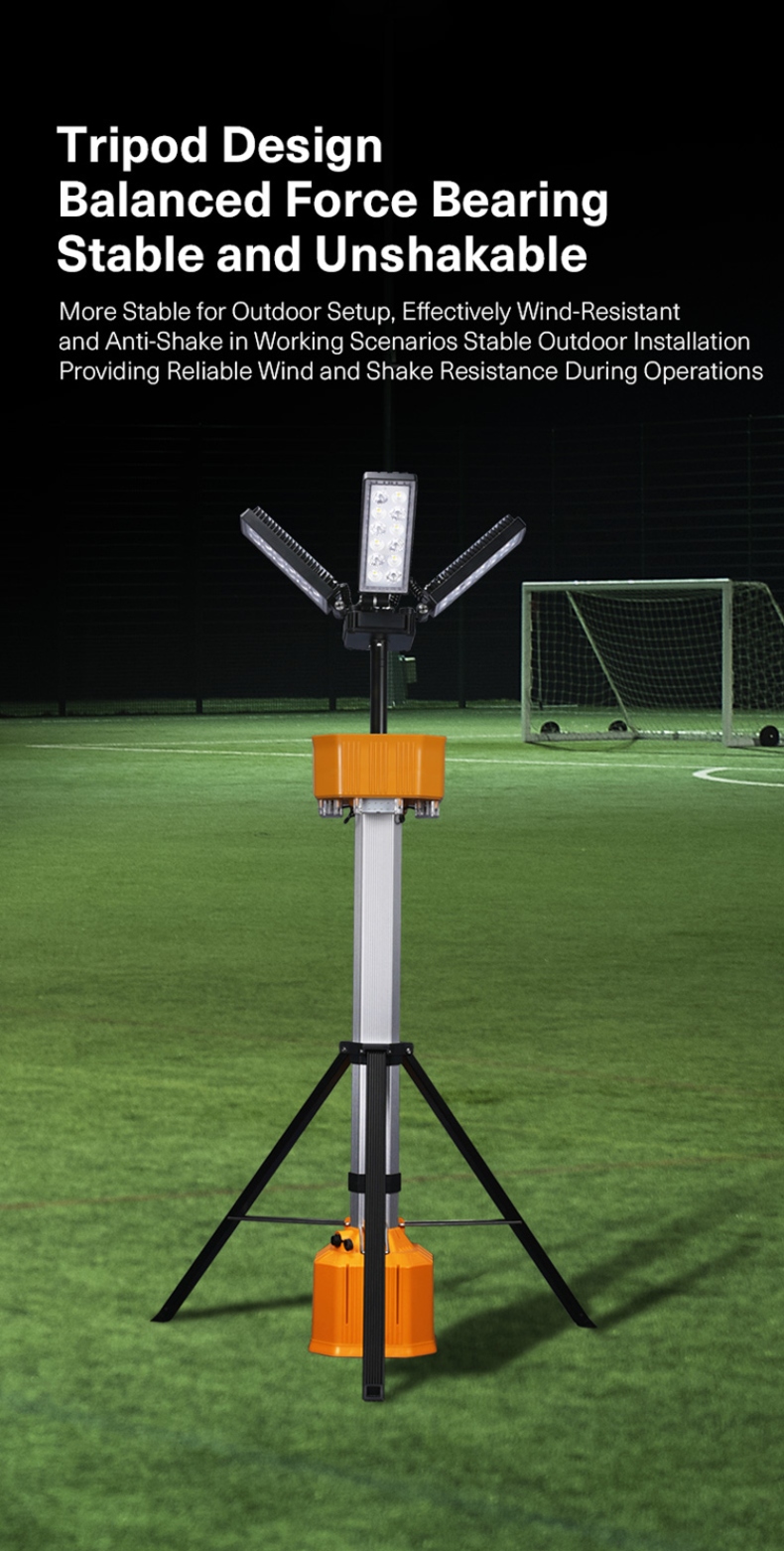 Triangular Stabilizing Legs: The base is equipped with triangular stabilizing legs, enhancing the stability and balance of the light, even in windy conditions.