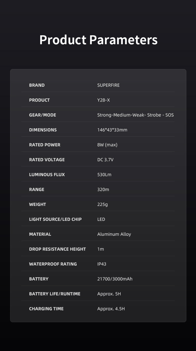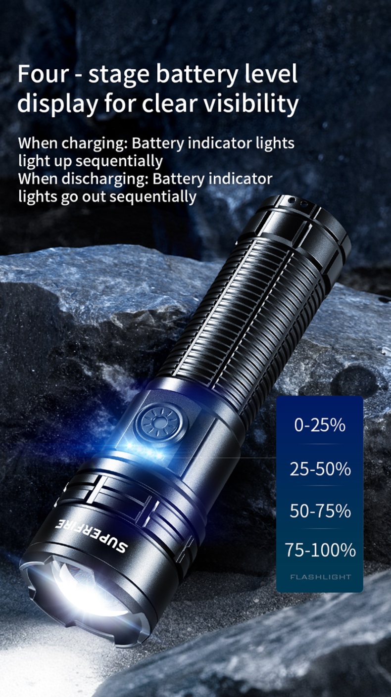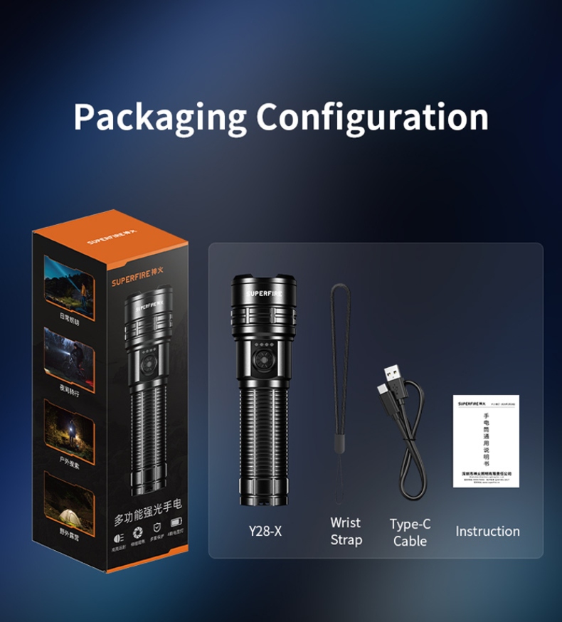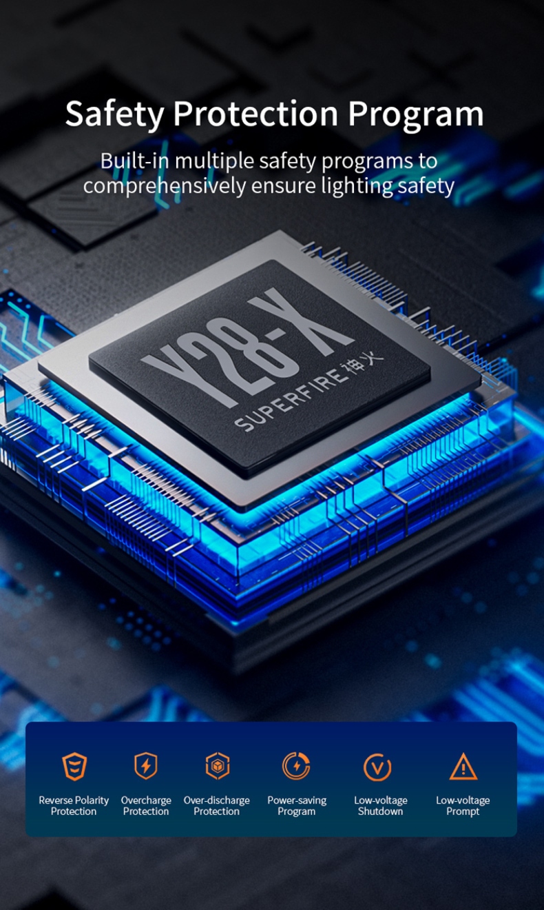 Comprehensive Safety Protection: Built-in multiple safety protection programs, including overcharge, over-discharge and short-circuit protection, effectively safeguarding the flashlight's use safety and extending its service life.