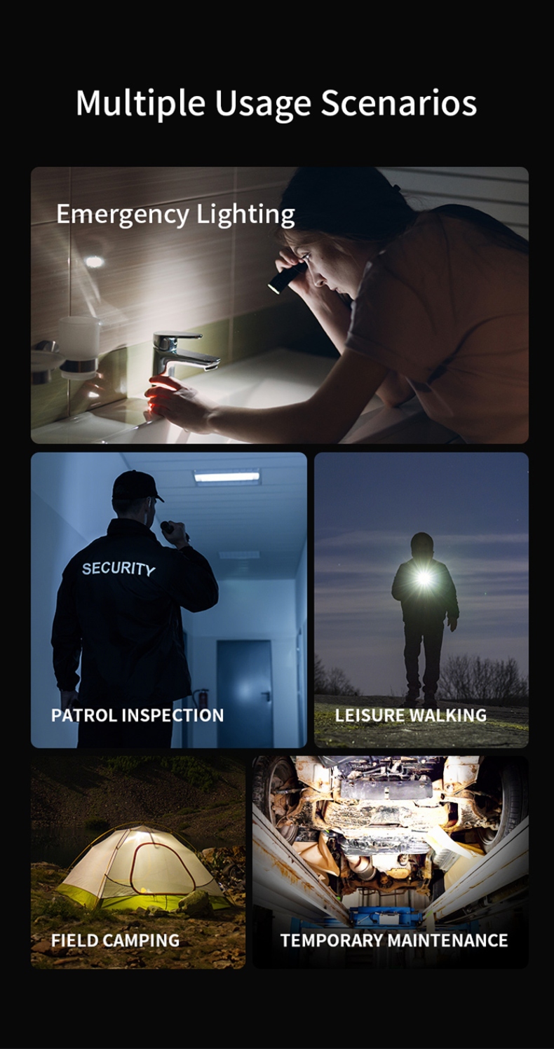 Multi-Level Dimming Modes: Provides multiple brightness gears to adapt to different lighting scenarios, such as daily commuting, outdoor camping, night work and emergency rescue, meeting diverse user needs.