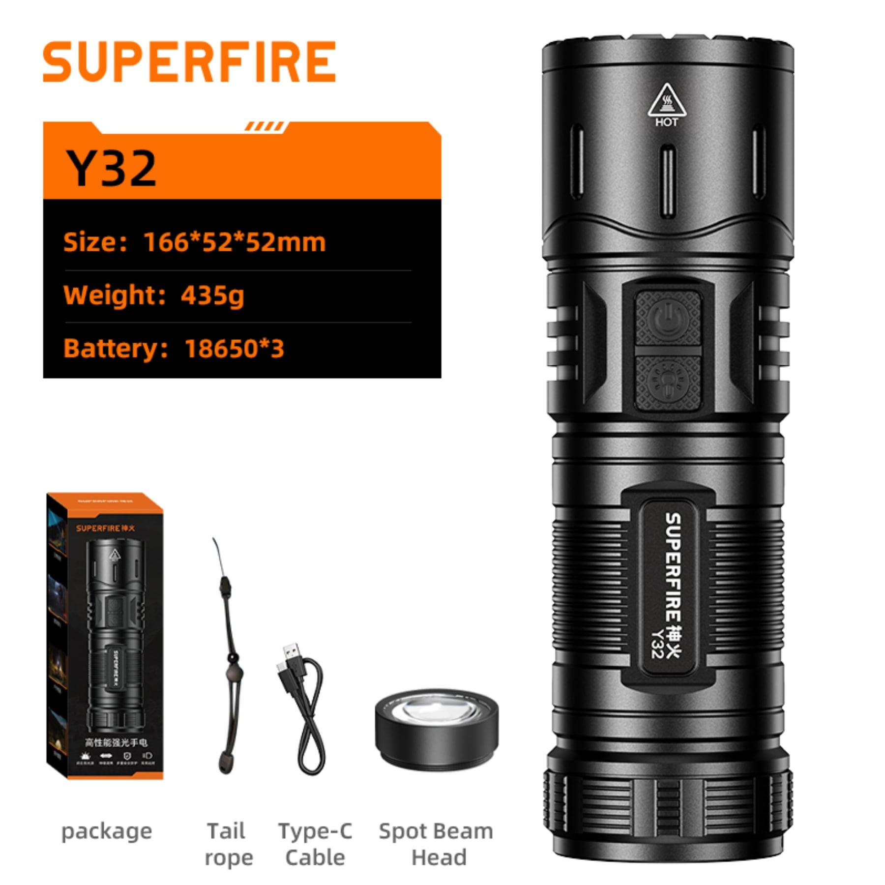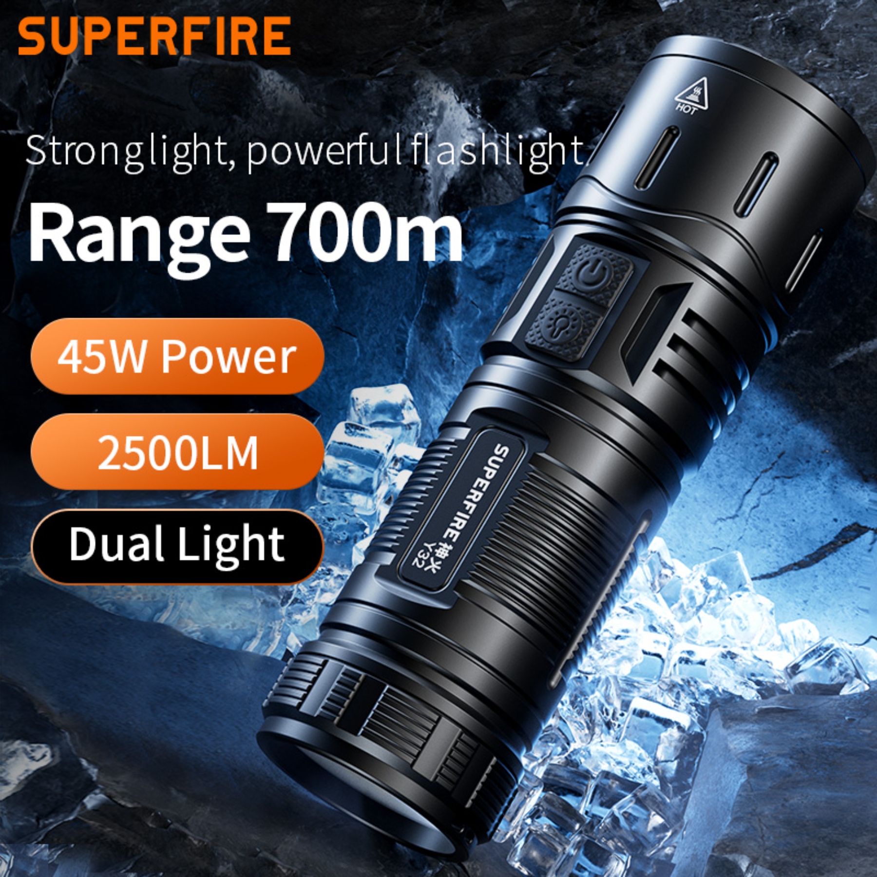 SUPERFIRE Y32 Long-Range Flashlight is a high-performance lighting solution designed for demanding outdoor activities, professional use, and emergency situations. With its impressive 2500 lumens output, 700-meter beam distance, and multiple light modes, this robust flashlight offers exceptional performance and versatility for all your long-range lighting needs.