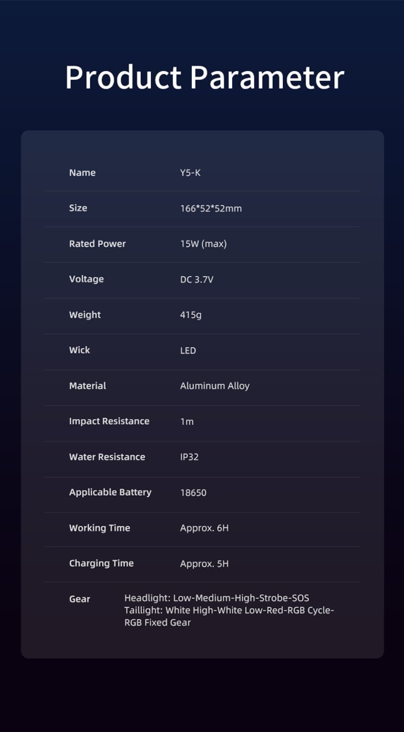 4. Dual front and rear lights, providing auxiliary lighting for multiple people traveling together.
