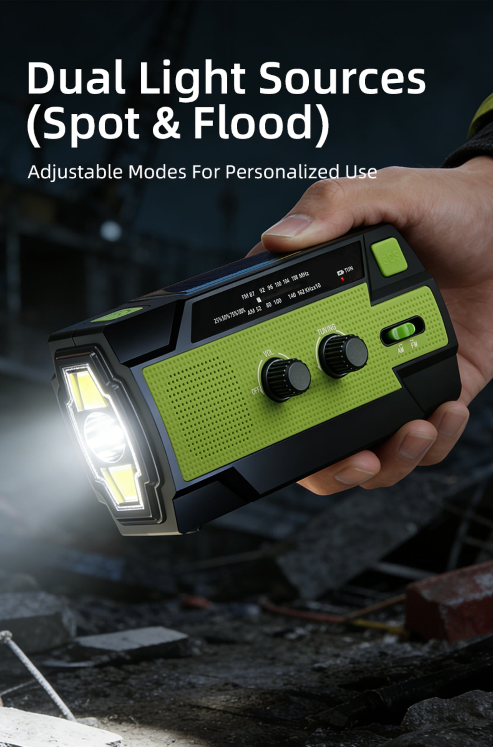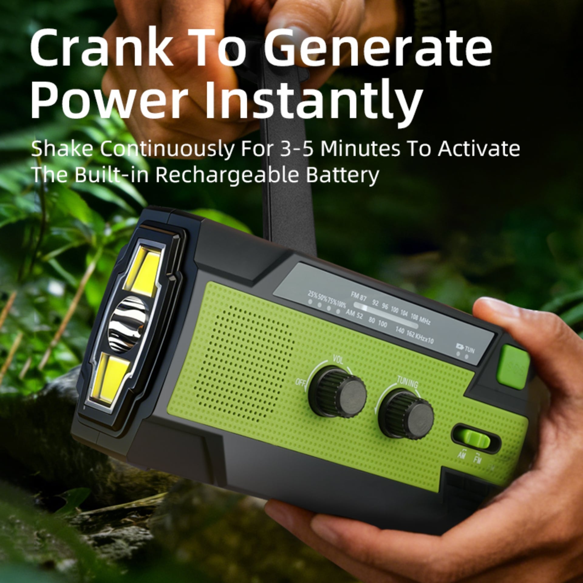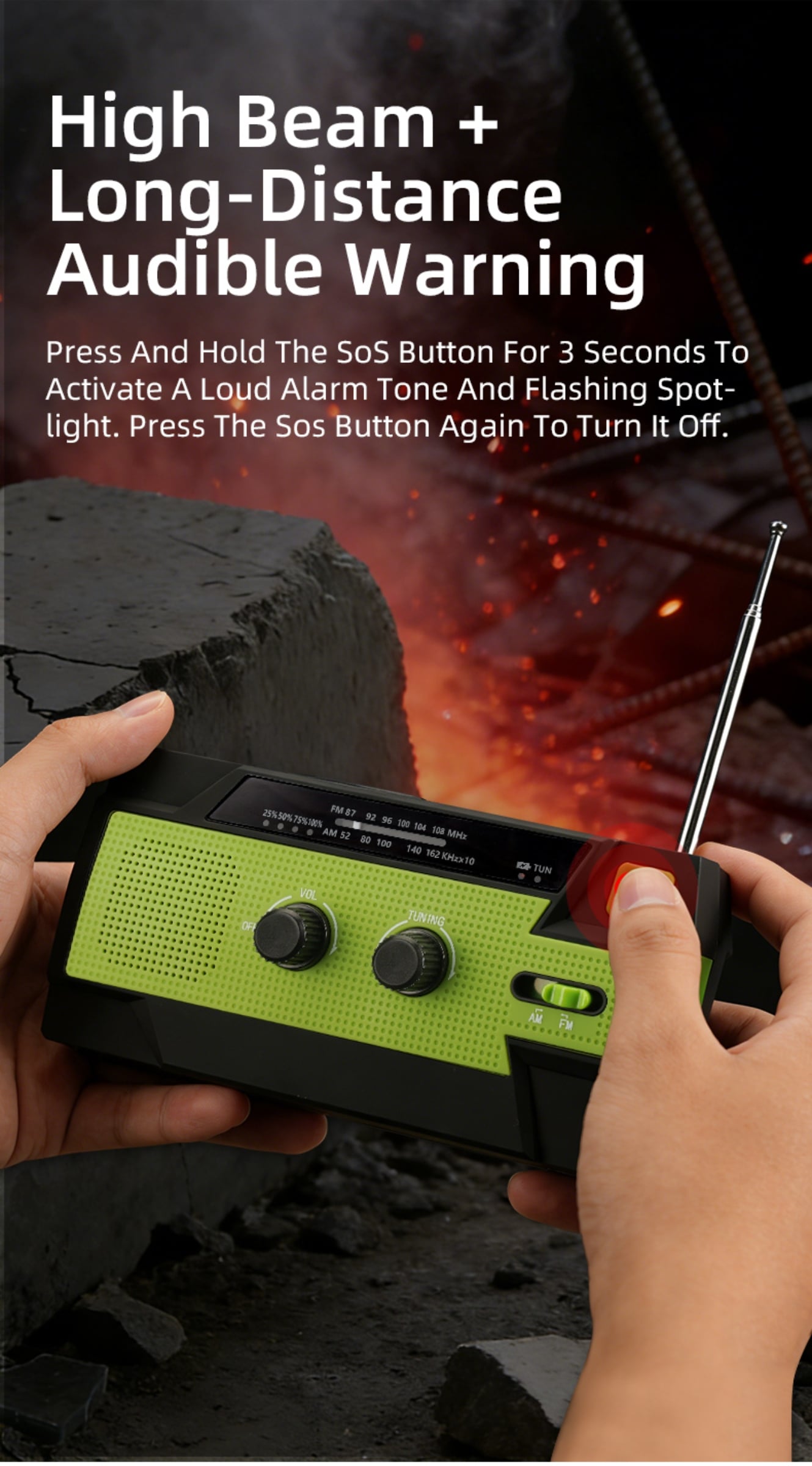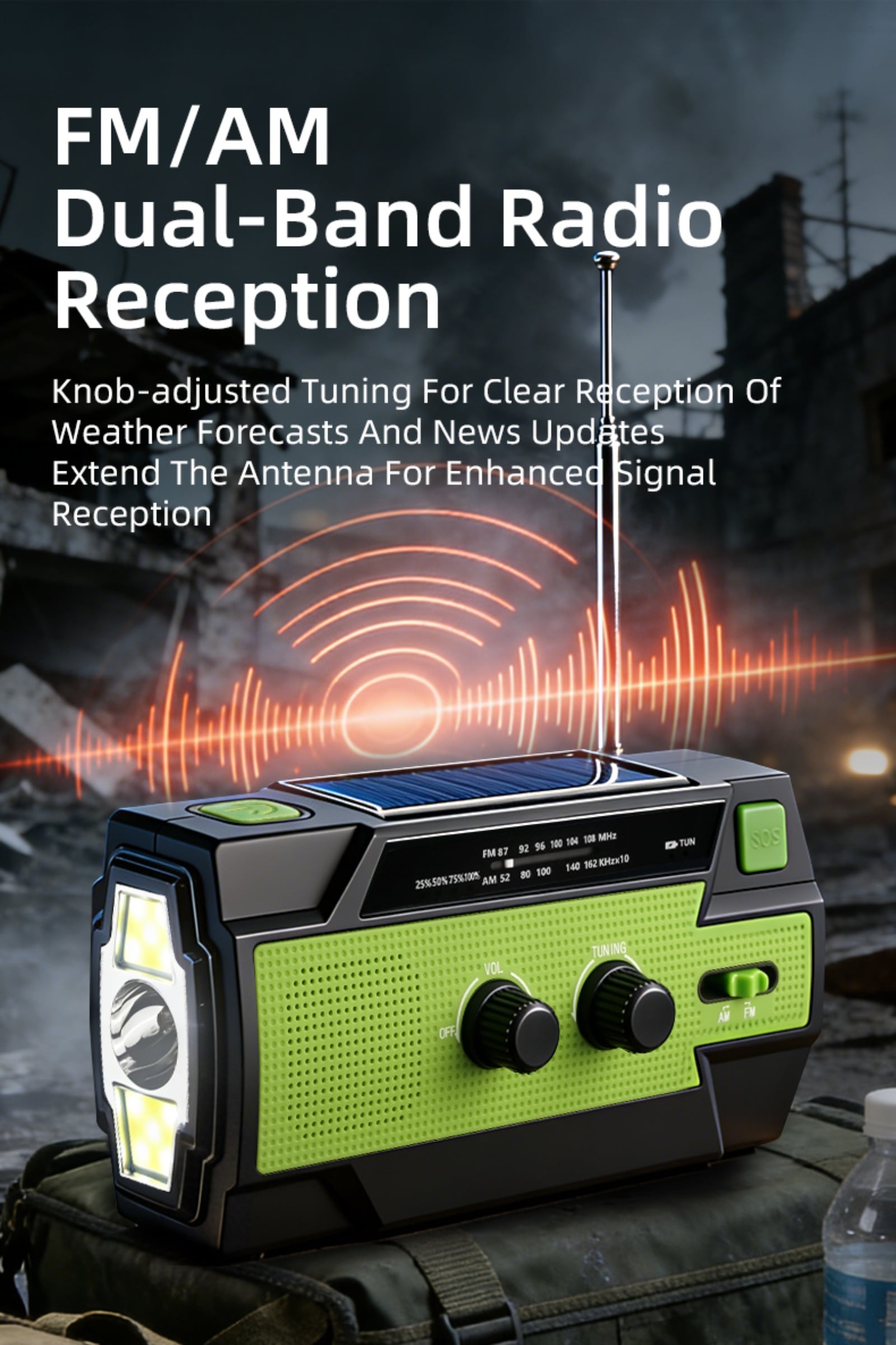 Emergency Alert & Radio: Built-in FM/AM radio and SOS alarm to get real-time information and send distress signals.