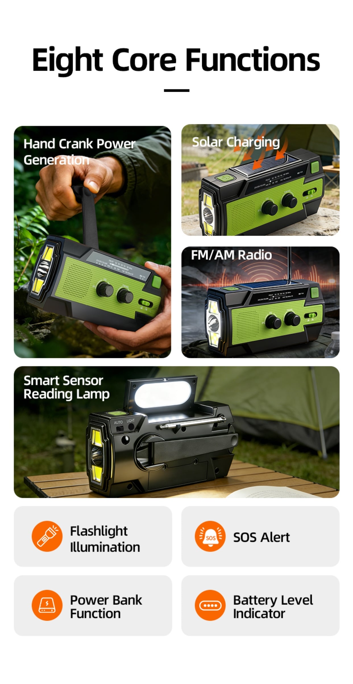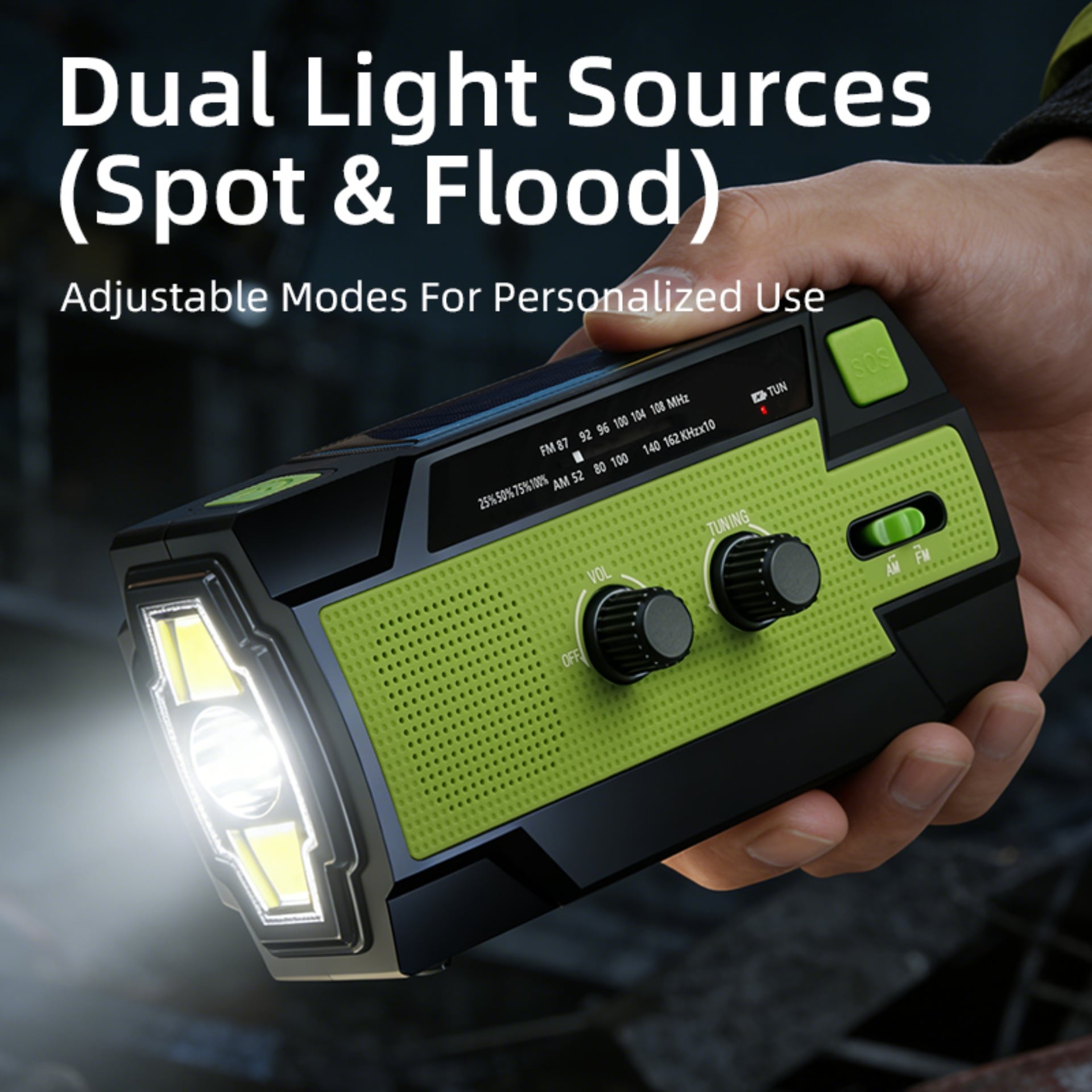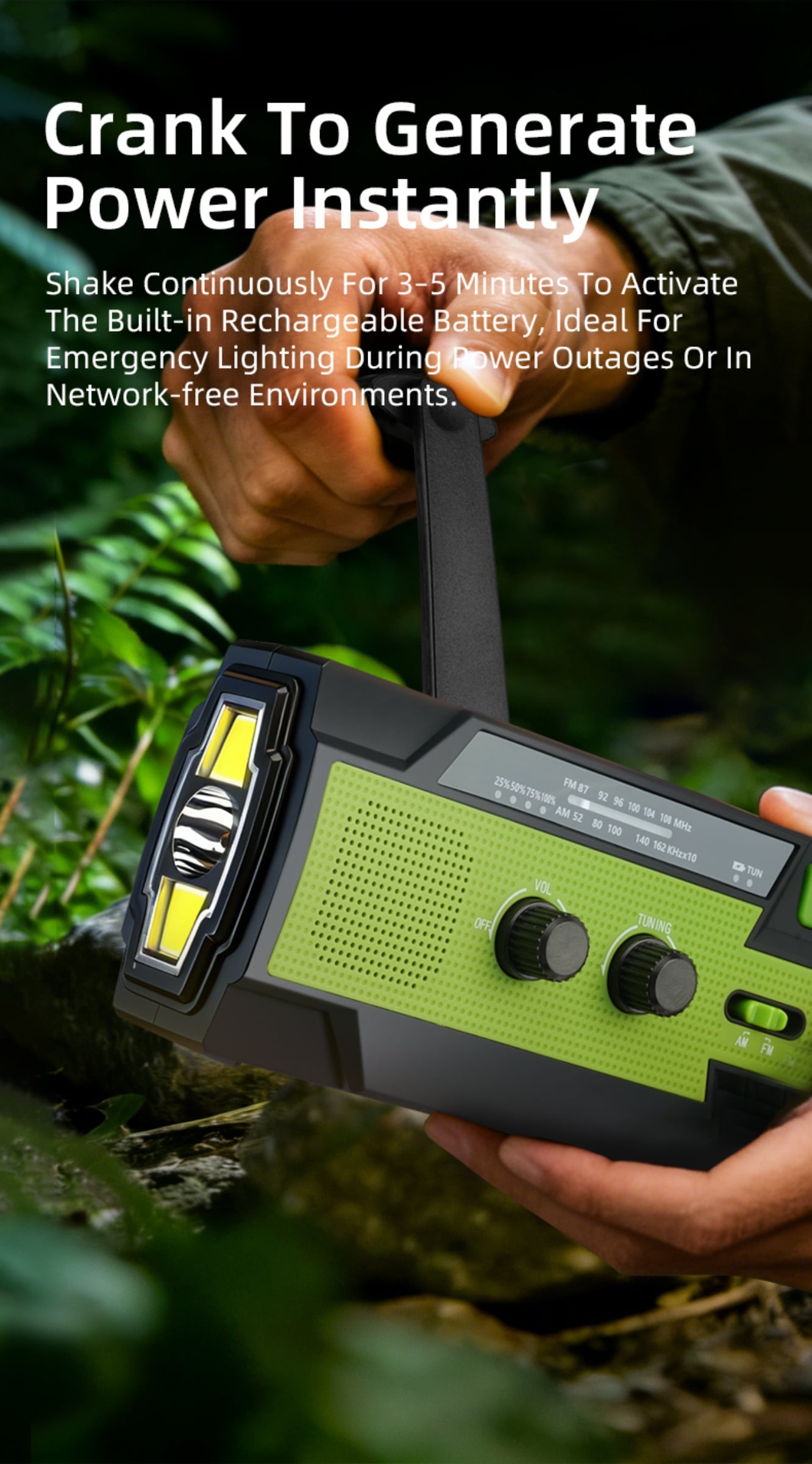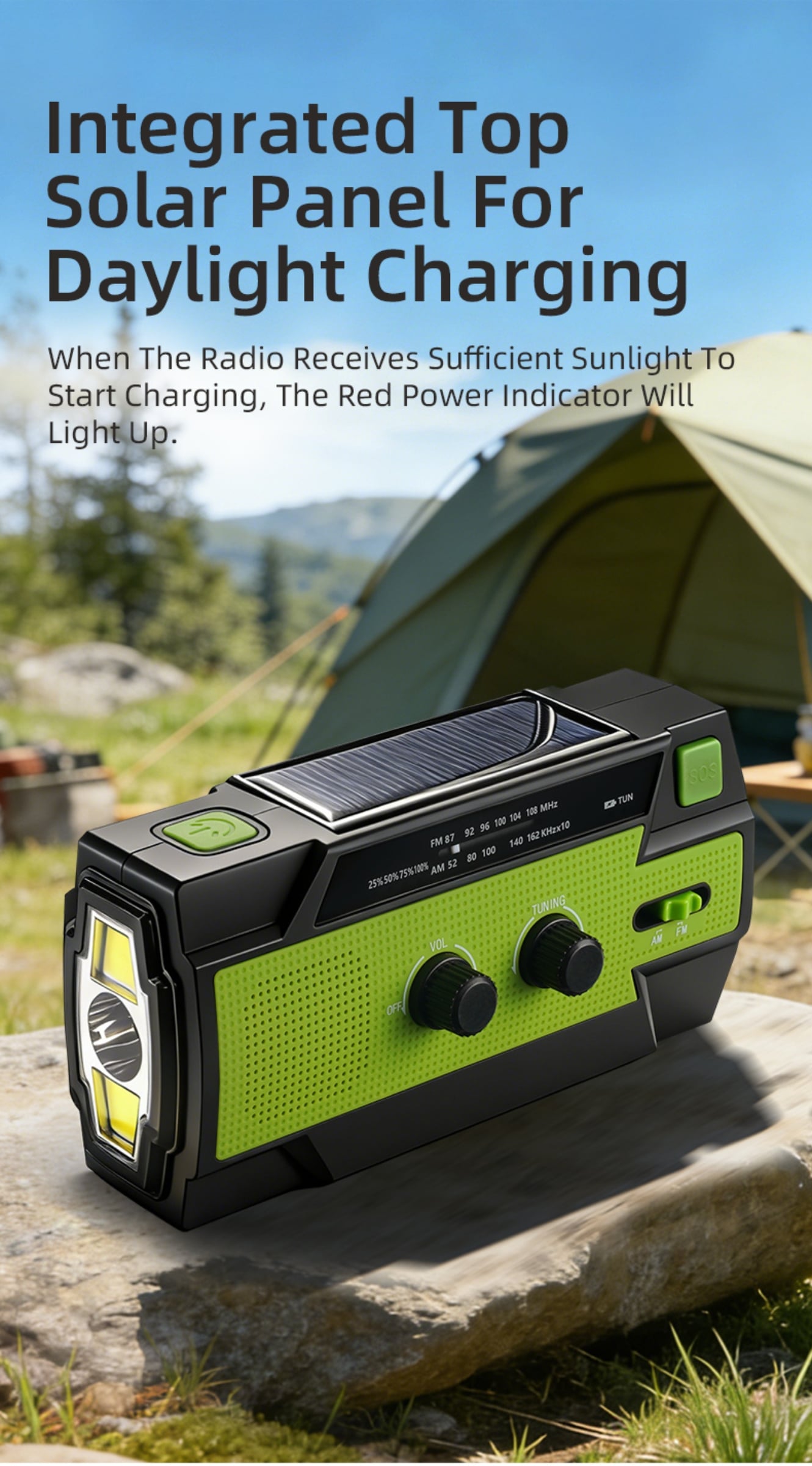 Emergency Alert & Radio: Built-in FM/AM radio and SOS alarm to get real-time information and send distress signals.