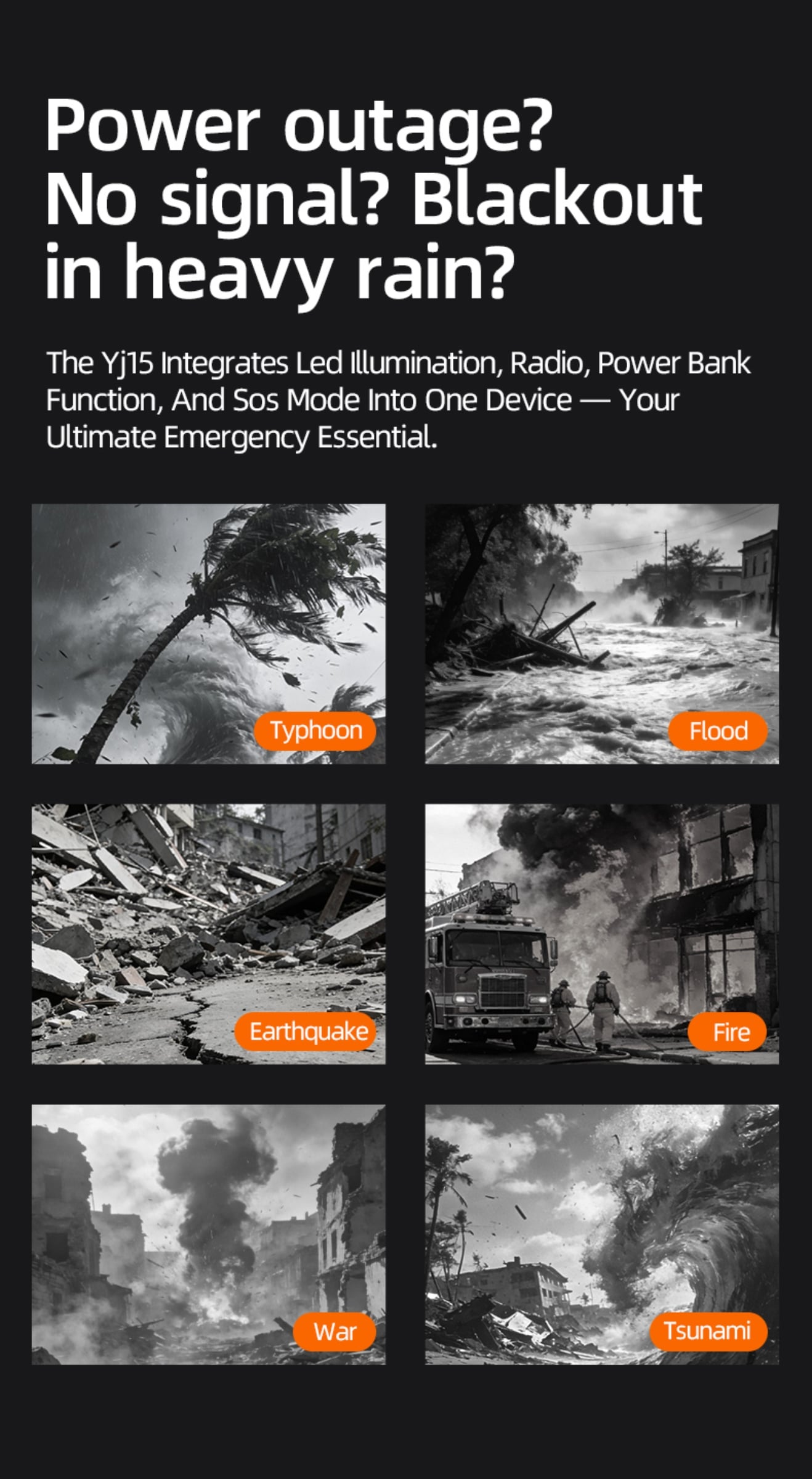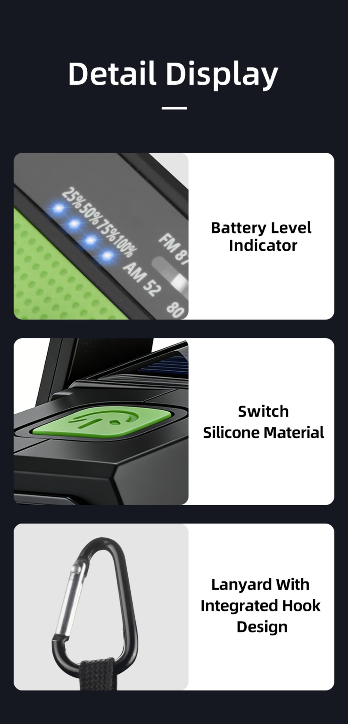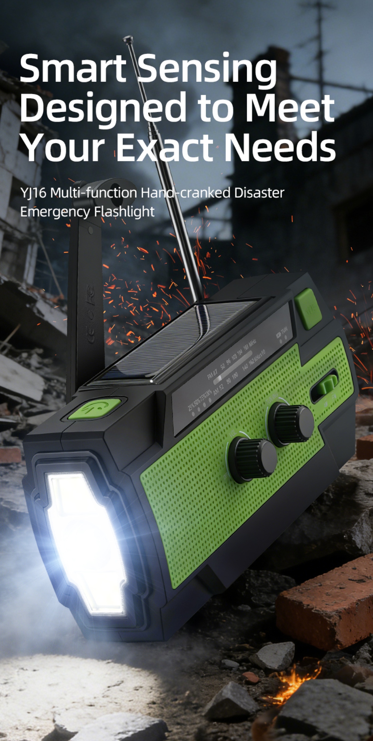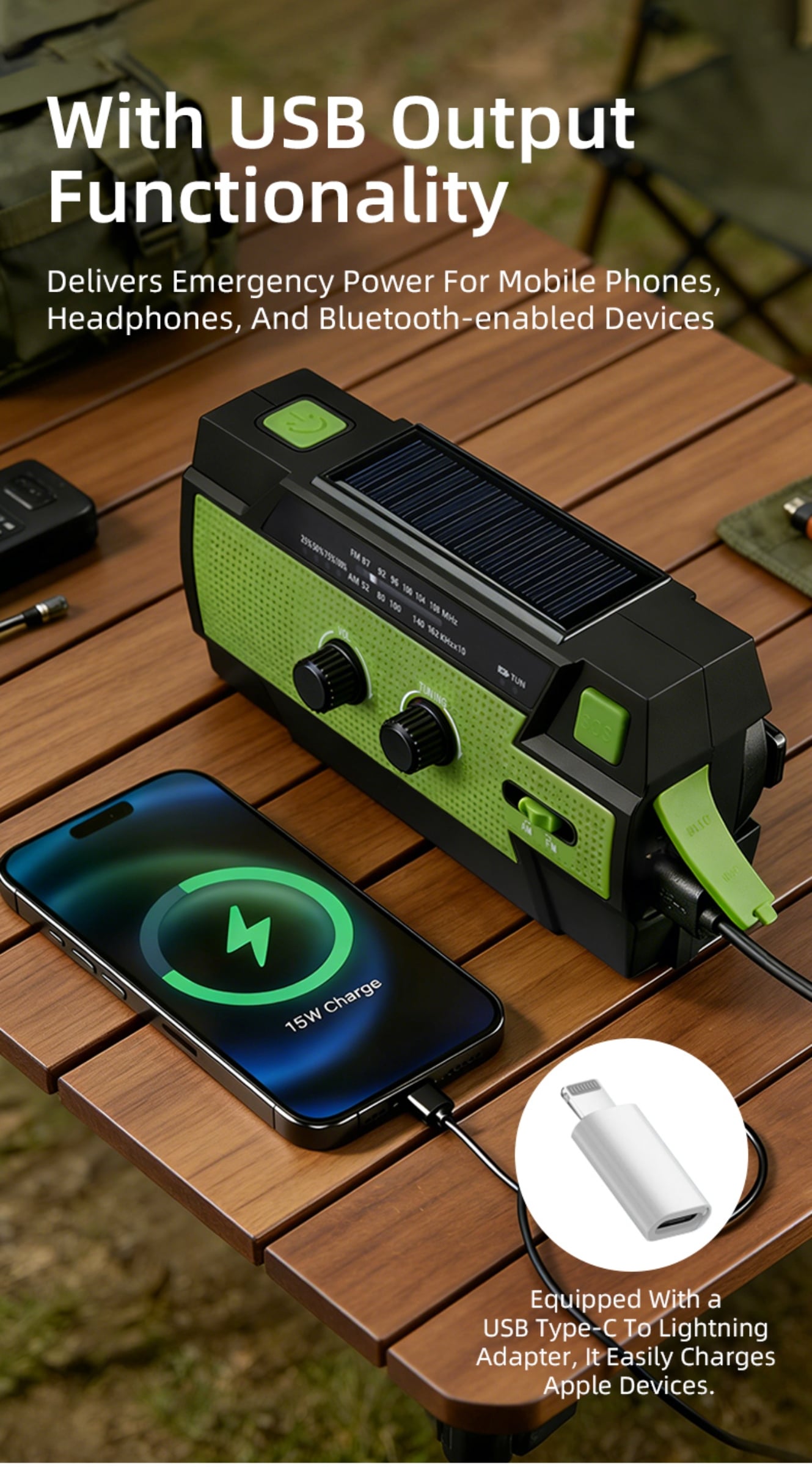 Emergency Alert & Radio: Built-in FM/AM radio and SOS alarm to get real-time information and send distress signals.