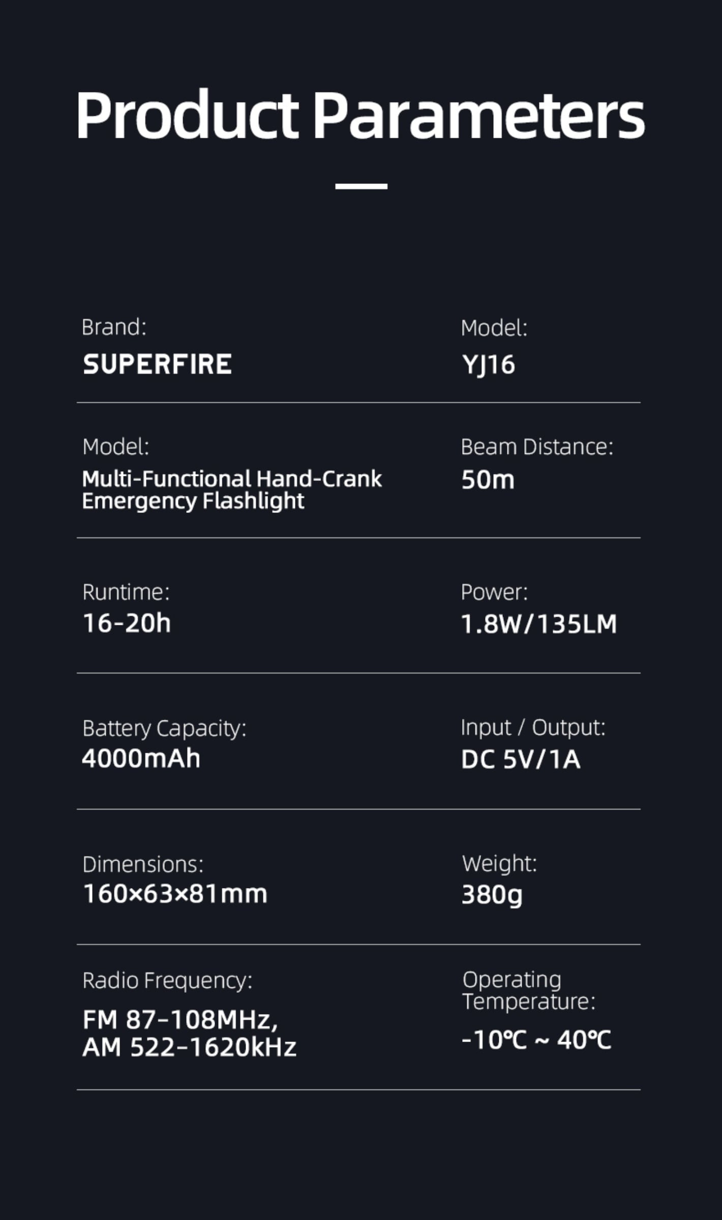 Compact & Durable: ABS rugged housing, lightweight (380g net), easy to carry for daily and emergency use.