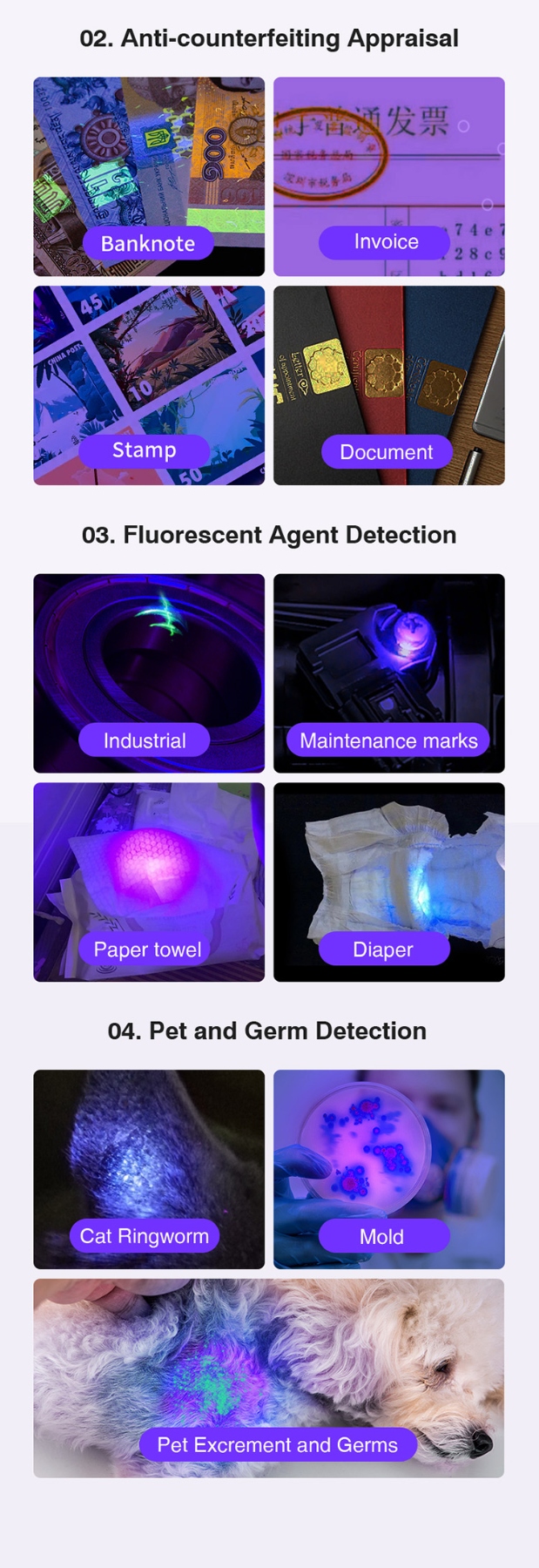 Equipped with high-power UV LEDs and precise optical design, our flashlights offer stable and focused illumination that performs well indoors or in low-light environments.